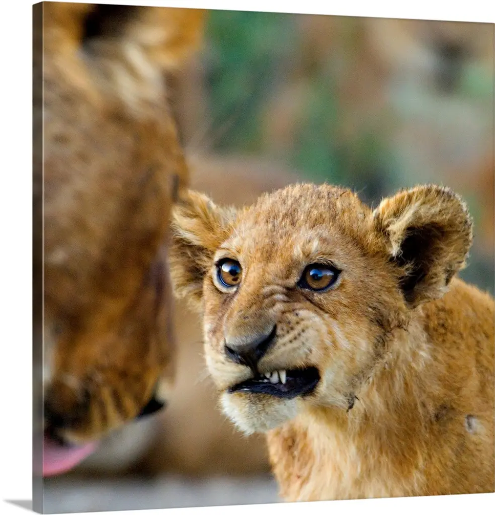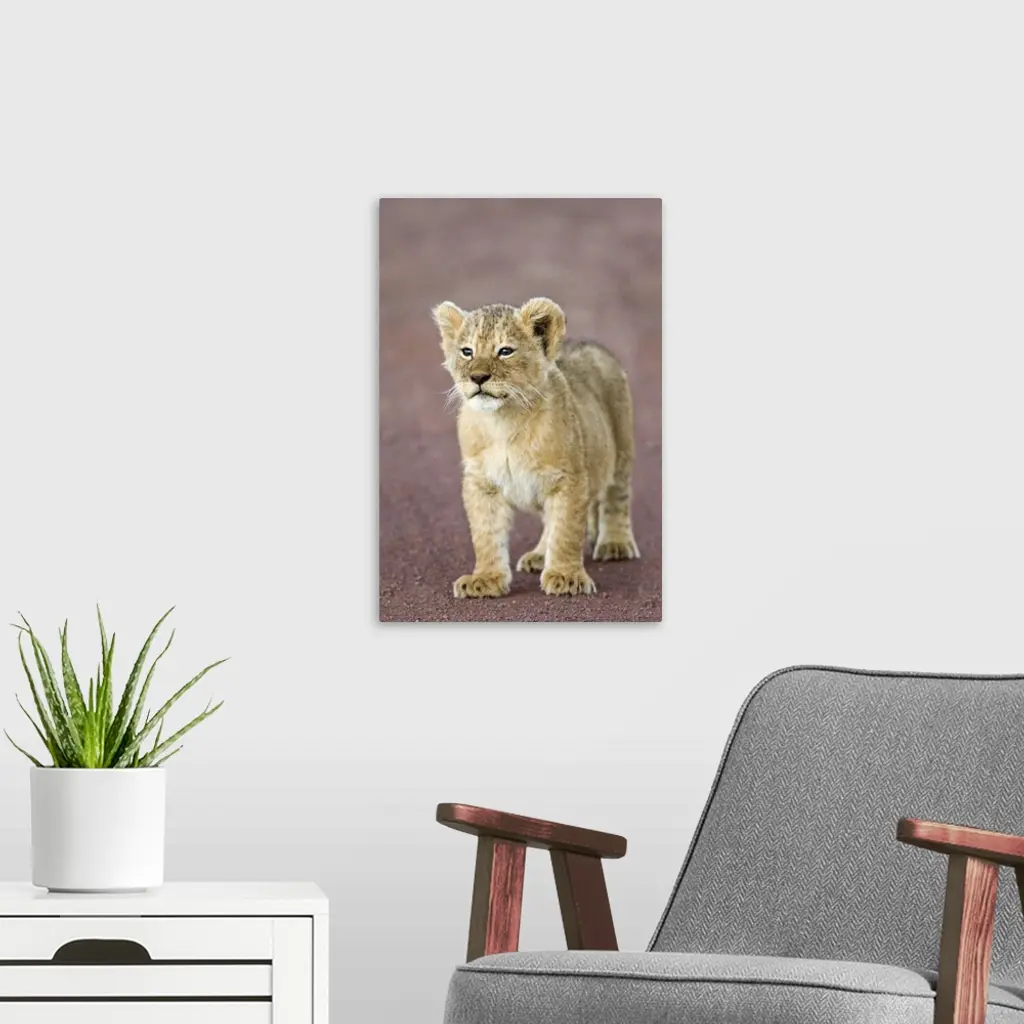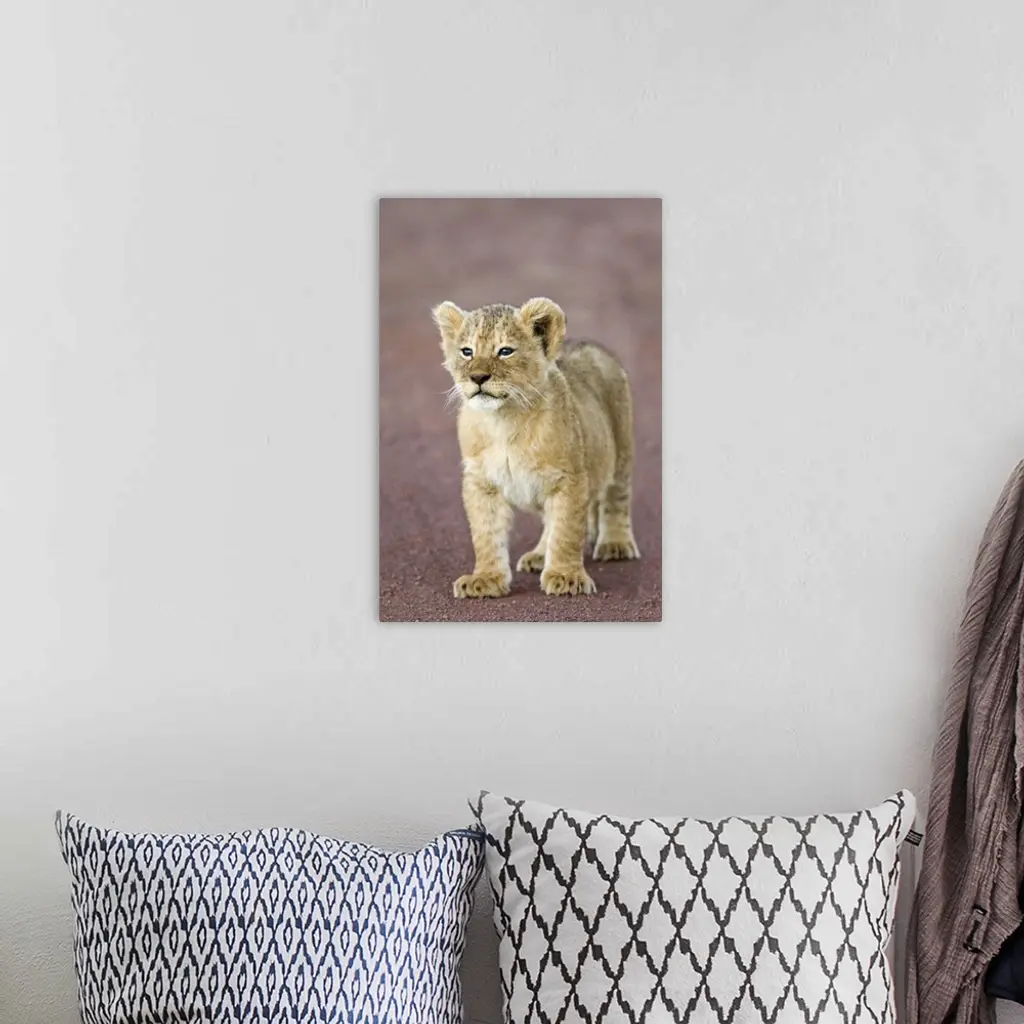 Close-up of a lion cub standing, Ngorongoro Crater, Ngorongoro Conservation Area, Tanzania (Panthera leo) wall art for home and office decor. Discover canvas art prints, photos, mural, big canvas art and framed wall art in GreatBigCanvas.com's varied collections.