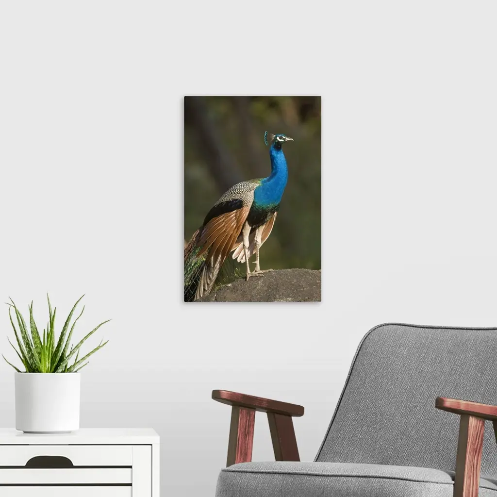 Close up of a peacock Bandhavgarh National Park Umaria District Madhya Pradesh India wall art for home and office decor. Discover canvas art prints, photos, mural, big canvas art and framed wall art in GreatBigCanvas.com's varied collections.