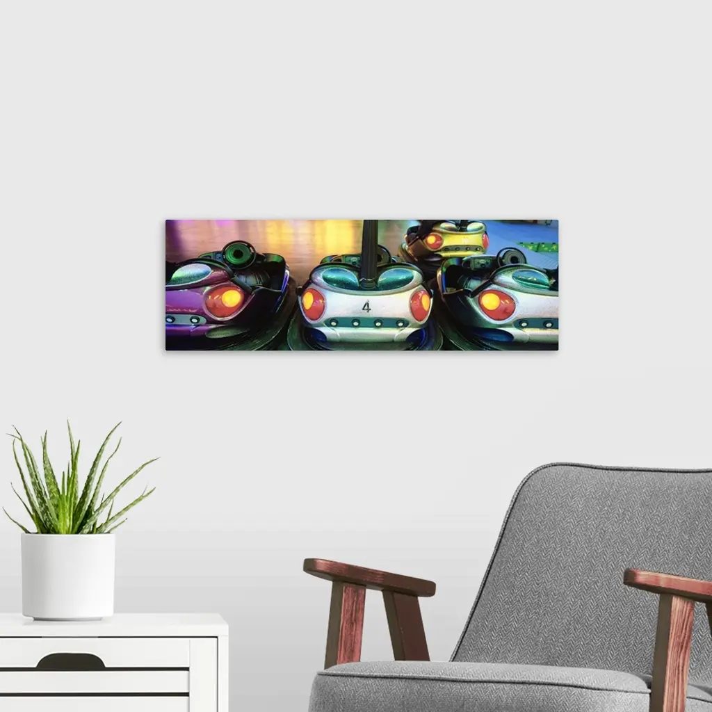 Close-up of bumper cars, Amusement Park, Stuttgart, Germany wall art for home and office decor. Discover canvas art prints, photos, mural, big canvas art and framed wall art in GreatBigCanvas.com's varied collections.