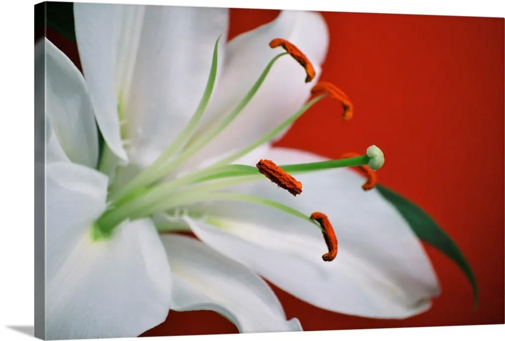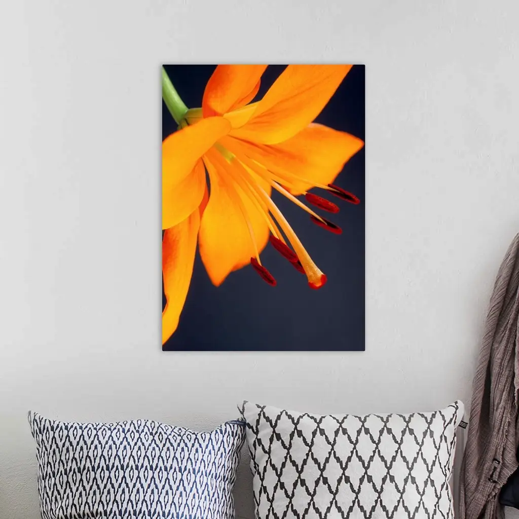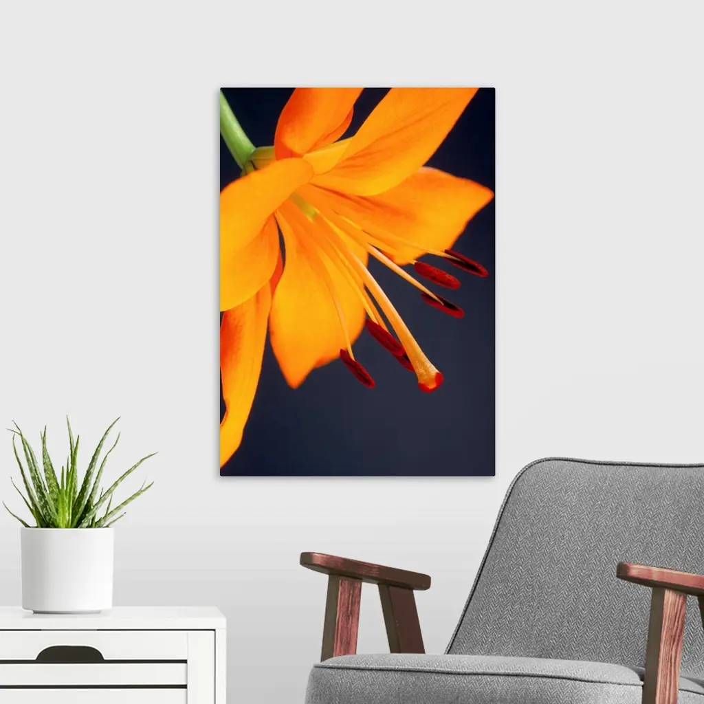 Close-up of orange lilium Brunello flower, against a blue background wall art for home and office decor. Discover canvas art prints, photos, mural, big canvas art and framed wall art in GreatBigCanvas.com's varied collections.