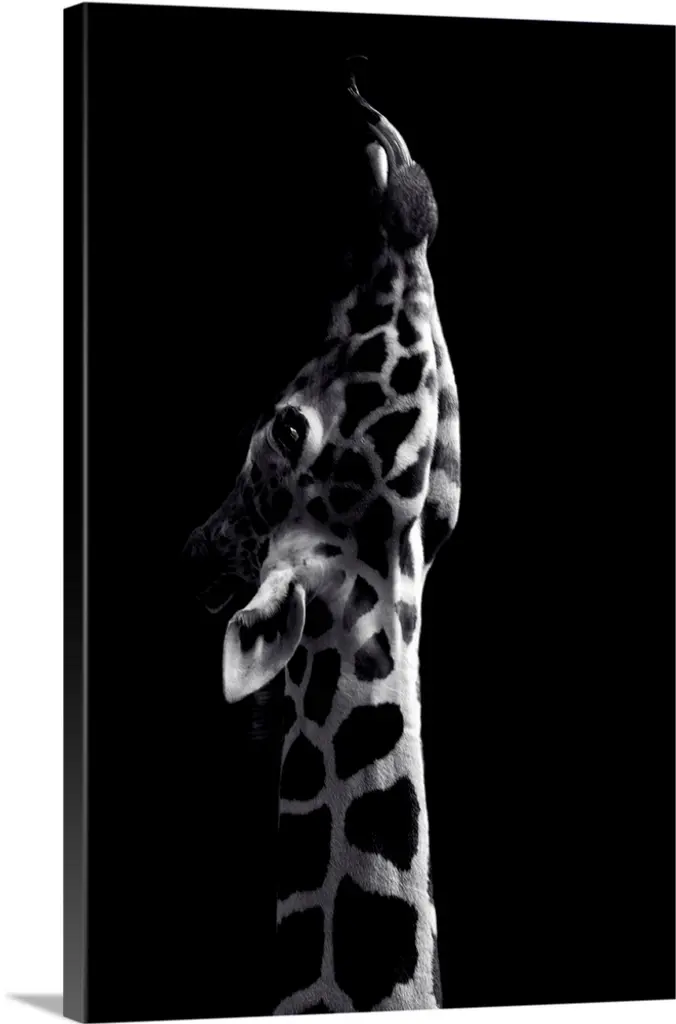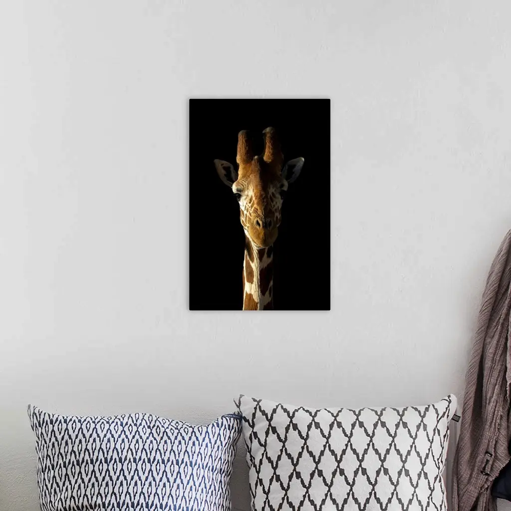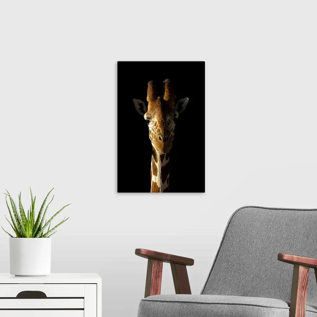 Close-Up Of Reticulated Giraffe Against Black Background, Segera, Laikipia, Kenya