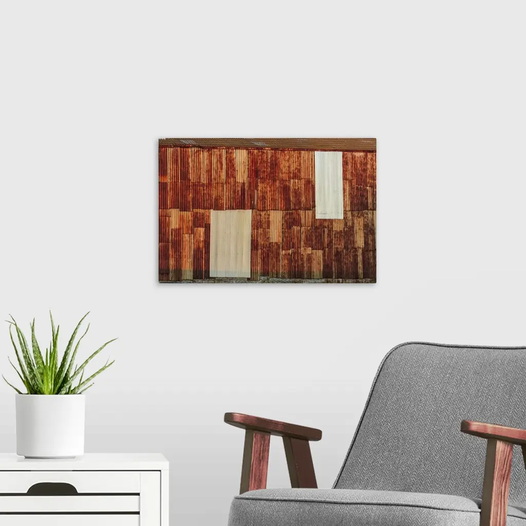 Close-up of rusted corrugated metal panels.