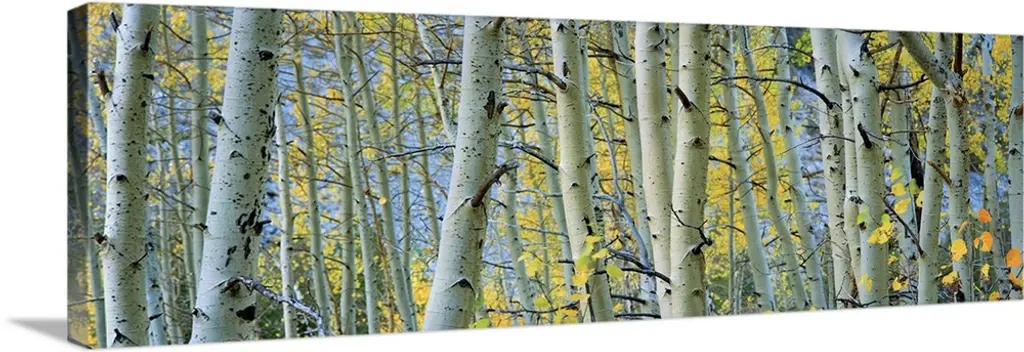 Close Up Of Slender Birch Trees In A Forest In Colorado - Panoramic