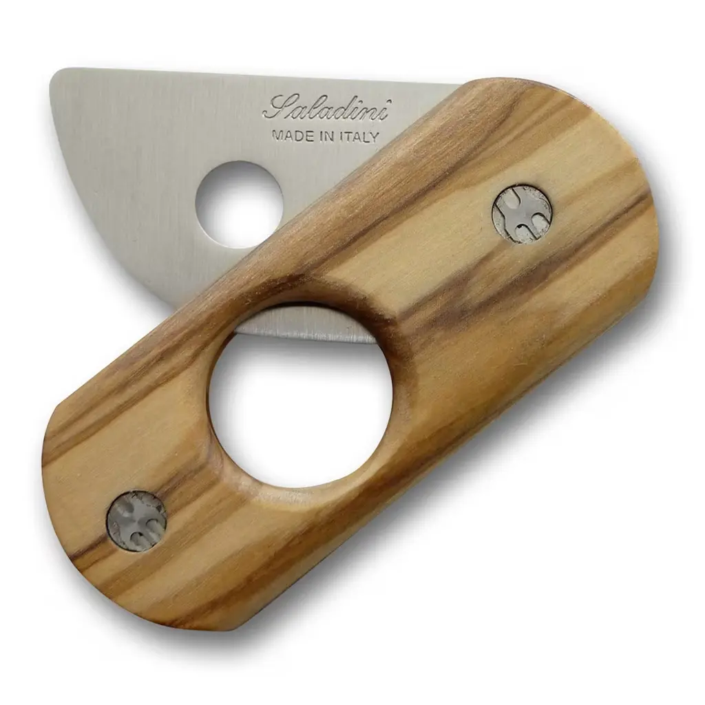 This portable cigar cutter allows a cigar lover to indulge in his favorite pastime while using an exquisitely crafted piece. This one has a closed hole and the steel center is surrounded with a body in olive wood that allows it to be easily handled. A perfect idea for a refined gift, this piece is part of a series of cigar cutters by Saladini that includes also the table version, with base, and a portable one with opened hole.