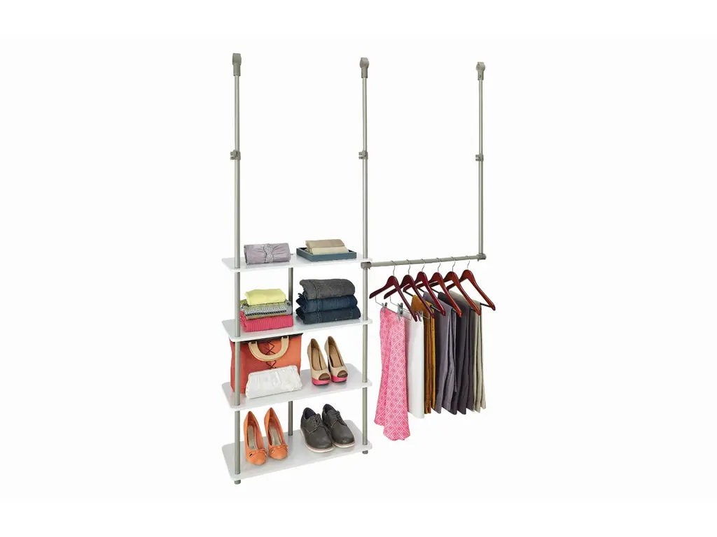 ClosetMaid's closet maximizer clips securely to your existing wire or wood closet rod, adding precious shelf space and a double hanging rod. Perfect for rental homes, dorm rooms and apartments, this closet organizer requires no tools for assembly and no holes drilled into walls. For a customized fit, both the height of the organizer and the width of the closet rod can be adjusted.