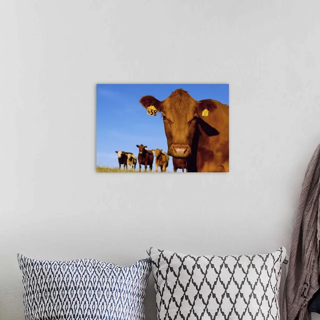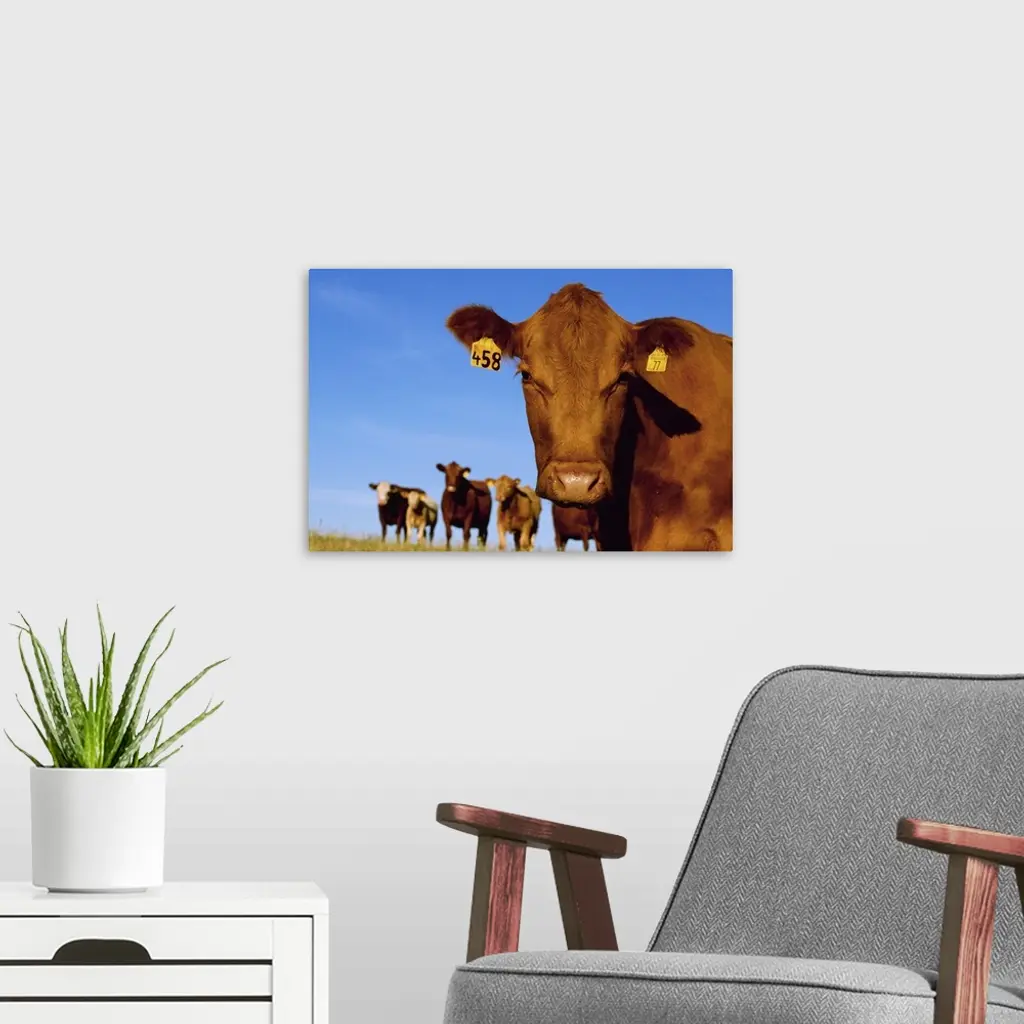 Closeup of a Red Angus cow with other cows in the background wall art for home and office decor. Discover canvas art prints, photos, mural, big canvas art and framed wall art in GreatBigCanvas.com's varied collections.