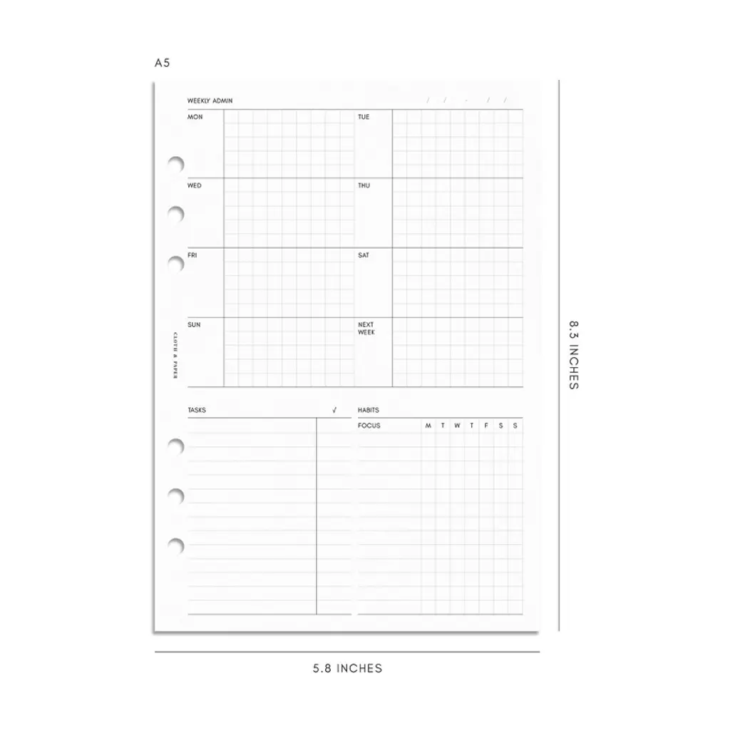 Cloth & Paper A5 Weekly Admin Planner Inserts