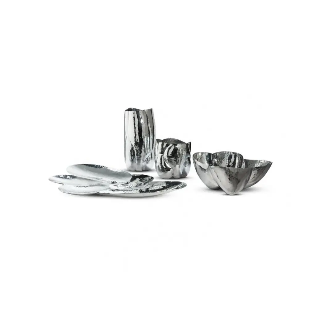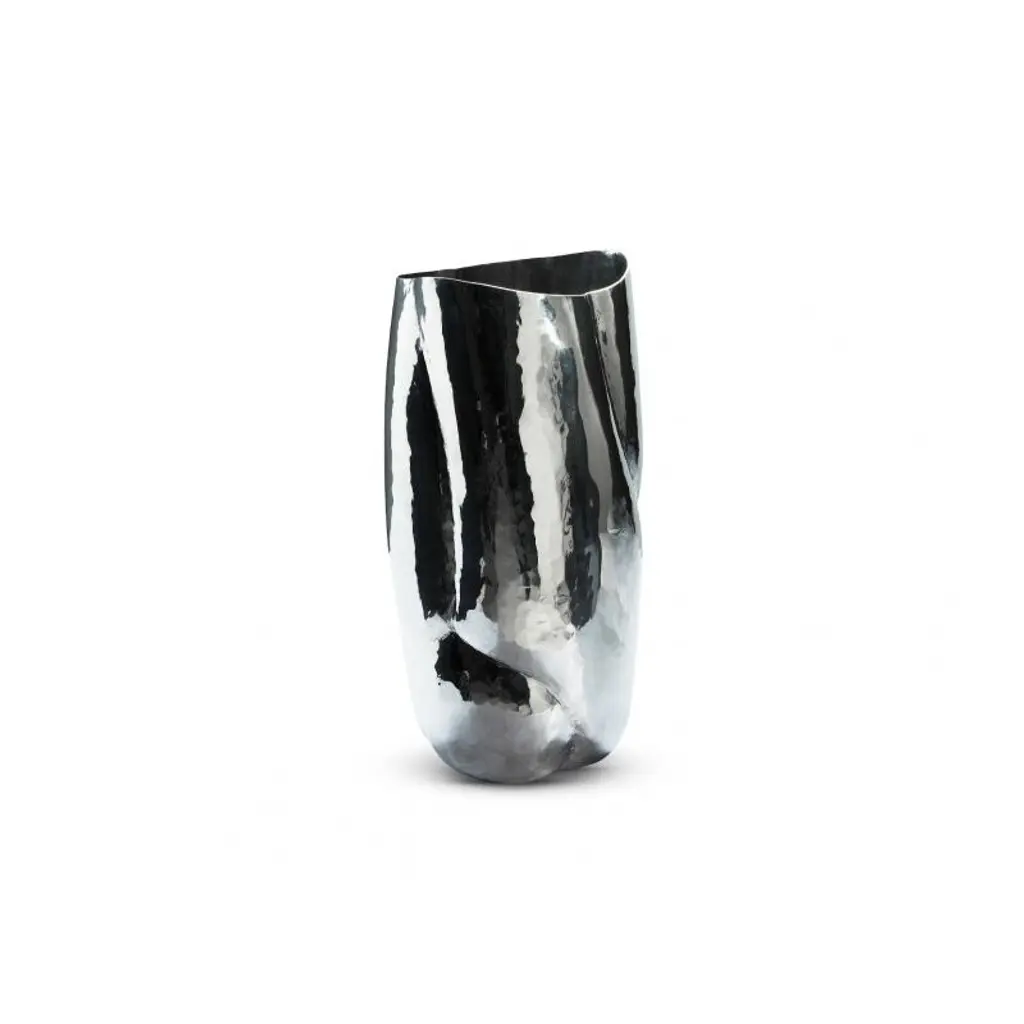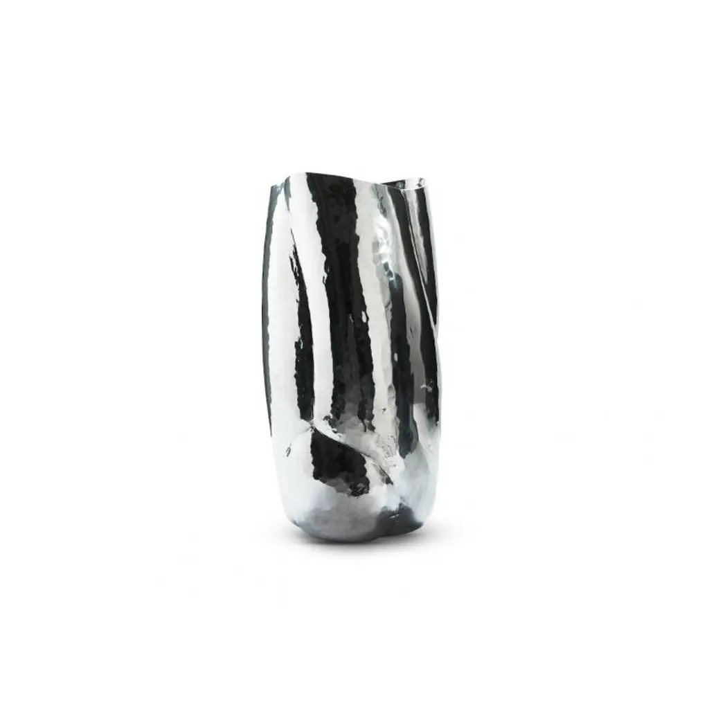 Tom Dixon's Cloud vessel was born from the designer's desire to create something round and asymmetrical simultaneously. Borrowing its shape from a fruit seed, the waterproof Cloud bowl is ideal for beautiful floral arrangements. You can also use the tall Cloud vase as a champagne cooler at parties – but watch out, as the eye-catching vessel could well become the talk of the party! The striking Cloud vessels are made by hand from aluminum sheets. The marks left by stretching, twisting, and hammering the metal are allowed to remain visible on the surface of the reflective vase. The handcrafted finish gives each vessel its own unique look.