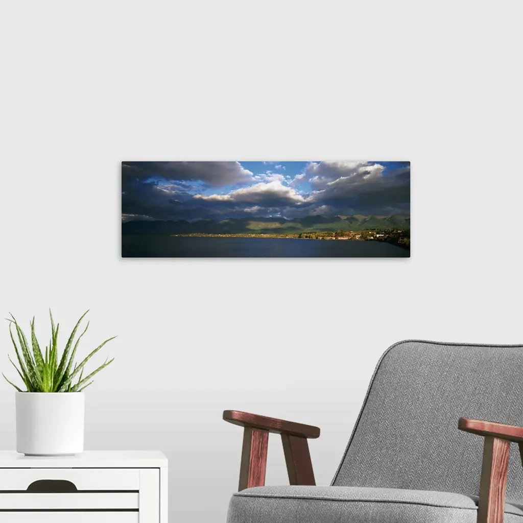 Clouded sky over a lake, Flathead Lake, Swan Range, Polson, Montana wall art for home and office decor. Discover canvas art prints, photos, mural, big canvas art and framed wall art in GreatBigCanvas.com's varied collections.