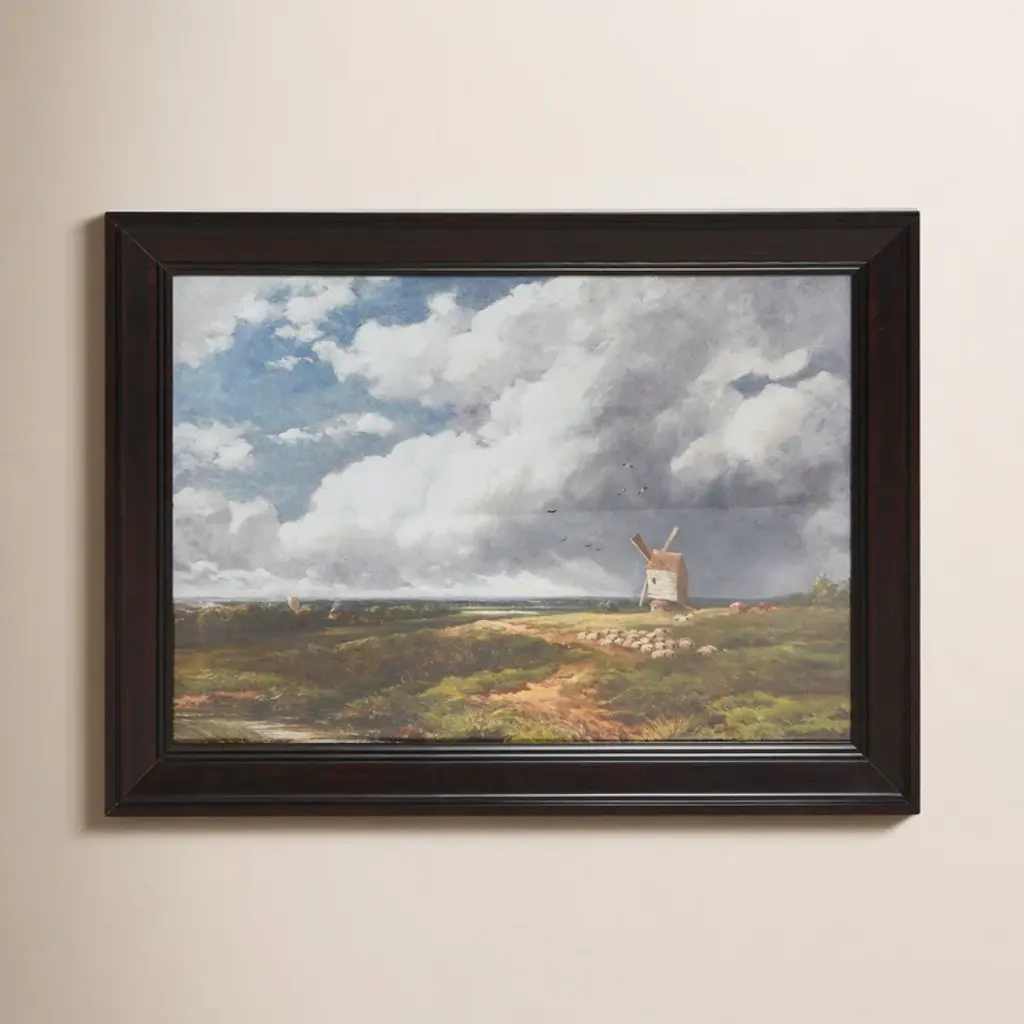 A serene countryside scene comes to life with each detail in Clouds Above a Field. The museum-quality piece is a giclee print on canvas with a hand-applied crackle finish. With a dreamy, vintage feel, this landscape adds intriguing beauty to your space.