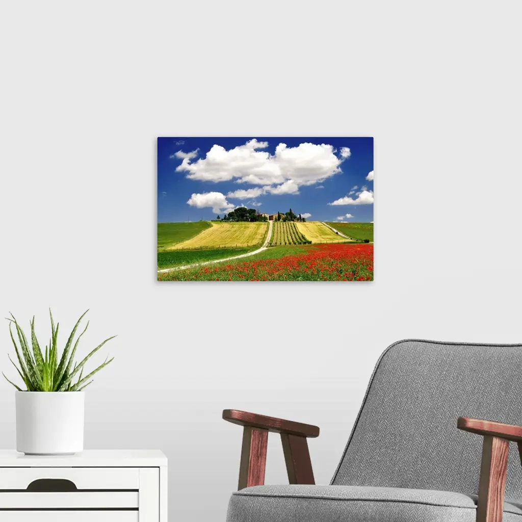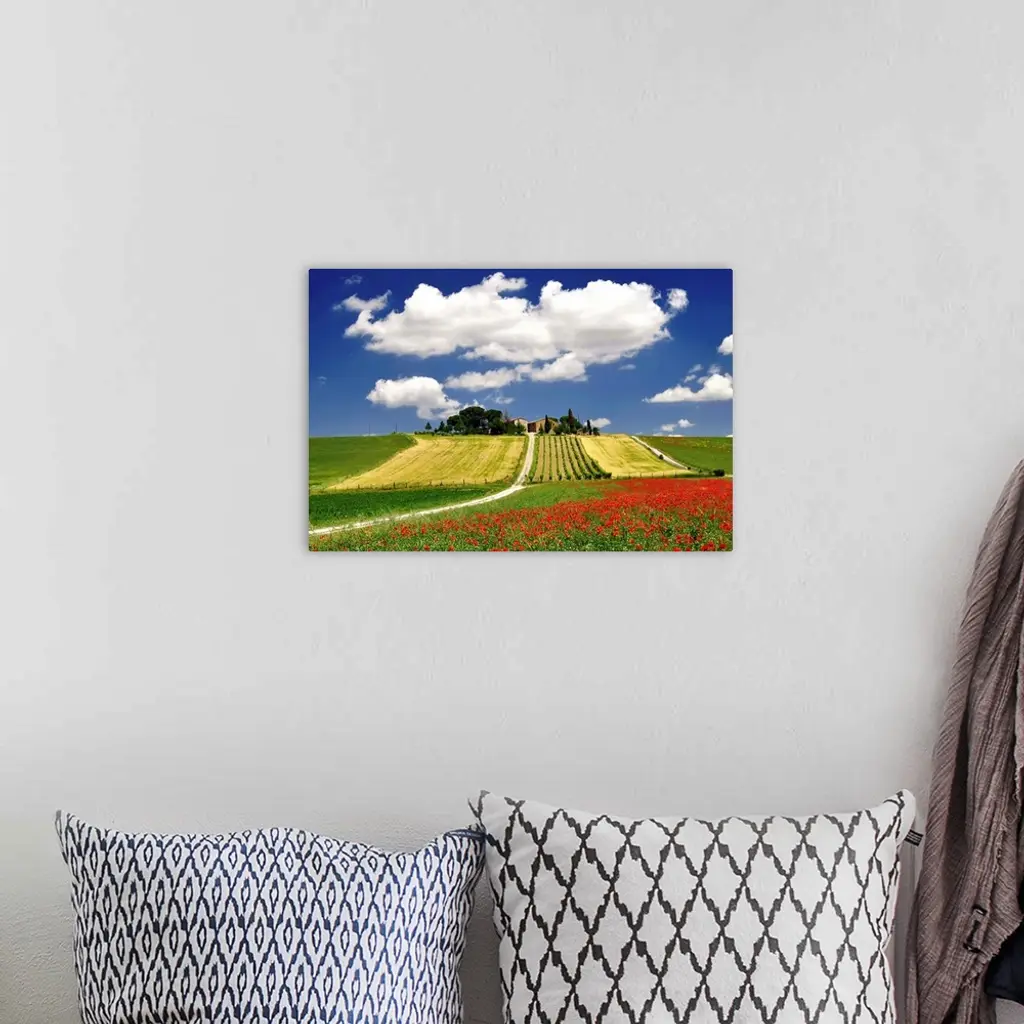 Clouds and poppies near vineyard. wall art for home and office decor. Discover canvas art prints, photos, mural, big canvas art and framed wall art in GreatBigCanvas.com's varied collections.