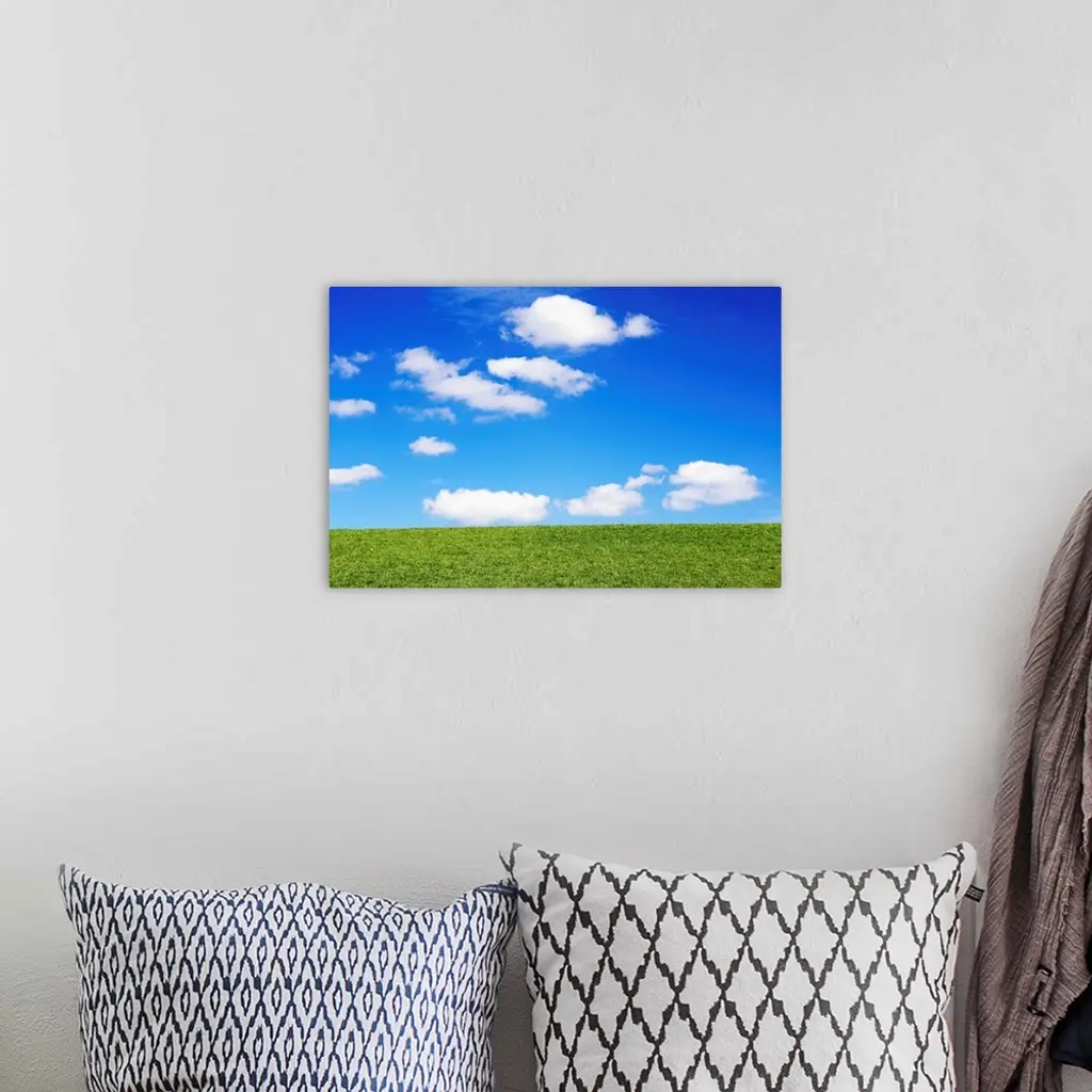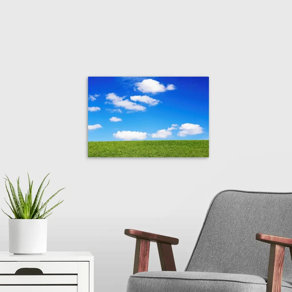 Clouds In Blue Sky Over Green Grass wall art for home and office decor. Discover canvas art prints, photos, mural, big canvas art and framed wall art in GreatBigCanvas.com's varied collections.