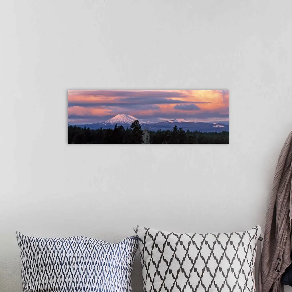 USA, Oregon, Mt Bachelor. Clouds take on sunrise colors above Mt Bachelor in the Cascades Range near Bend, Oregon.