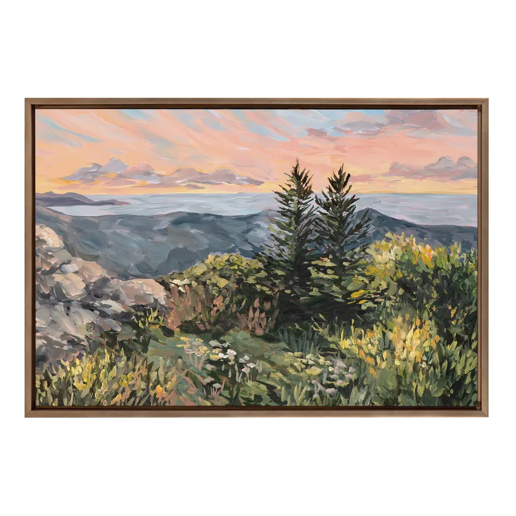 Giclee on Canvas. Finished with a gold wood frame. Designed by Trisha Ferguson.