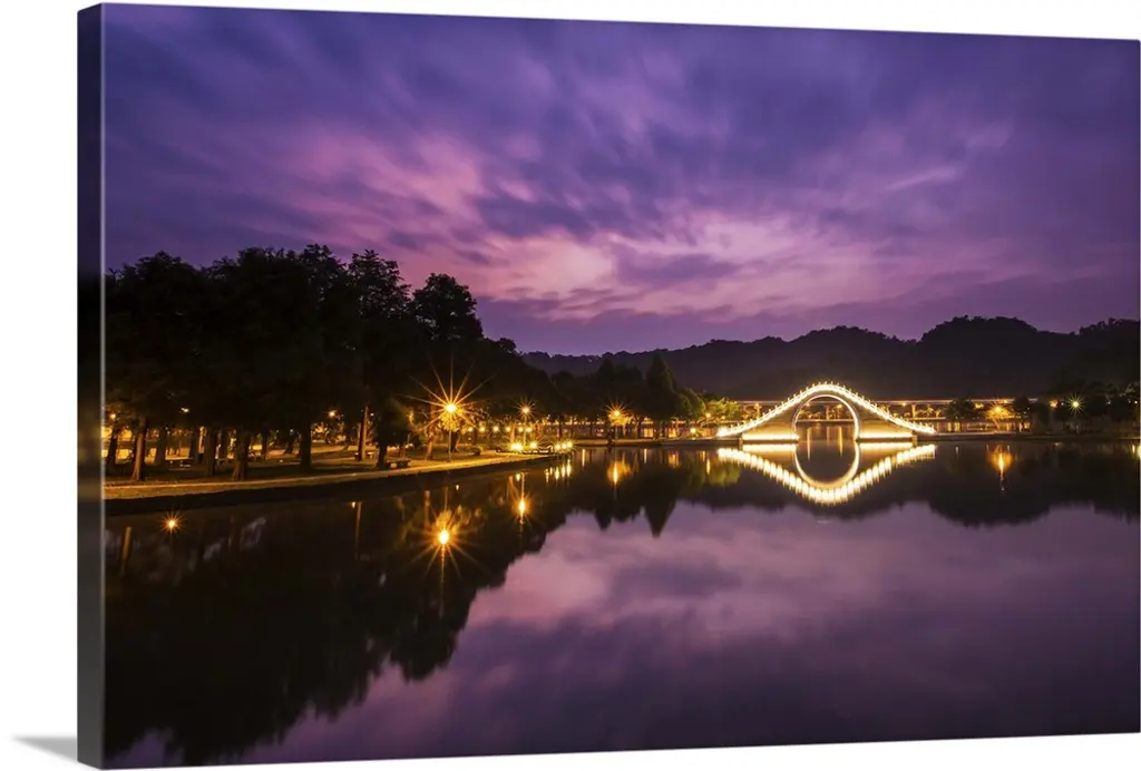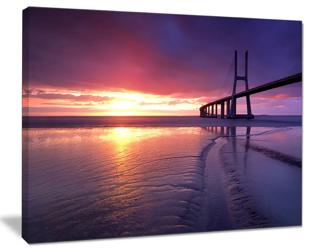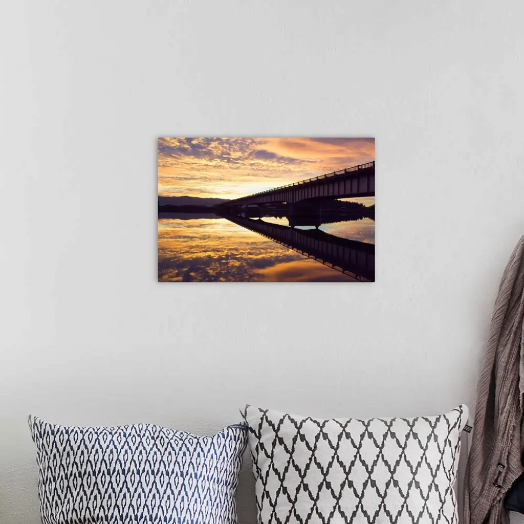 Cloudy sunset sky over bridge, reflection in Flathead River, Montana wall art for home and office decor. Discover canvas art prints, photos, mural, big canvas art and framed wall art in GreatBigCanvas.com's varied collections.