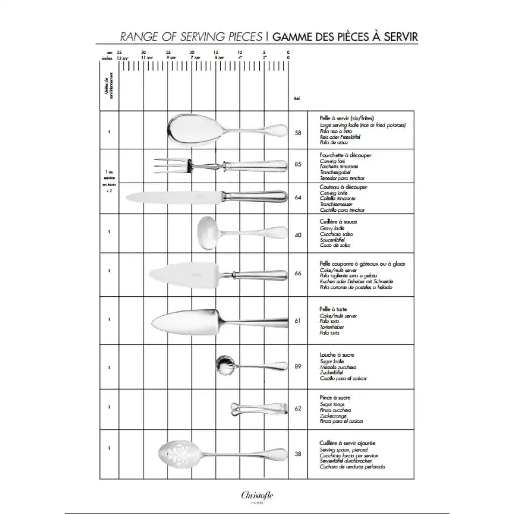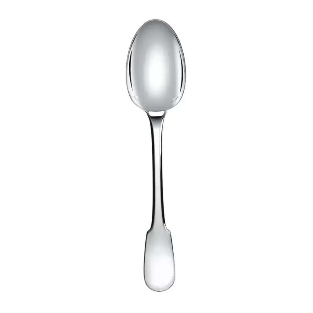 The silver plated salad serving spoon in the Cluny pattern can be used in conjunction with a salad serving fork to dish up mixed greens. The simple and elegant Cluny collection, which dates back to Christofle‘s first catalog in 1862 when it was known as Uni, was slightly redesigned in 1964. It still maintains an overall Louis XIII feel and is a blank canvas for personalization. Thanks to its creations in silver, Christofle is a symbol of luxury and elegance. Since its founding in the mid-19th century, it has been a continous innovative force and has infused each era with a new art of living. Thus, over time, this prestigious company has revolutionized styles, techniques, and methods for the production and distribution of silver plate and the decorative arts. A player in and privileged witness to the evolution of taste, customs, and traditions, Christofle has always seen its name associated with major creative trends, renowned artists such as Man Ray or Jean Cocteau, avant-garde architects such as Gio Ponti, and modernist silversmiths such as Lino Sabattini and Christian Fjerdingsatd, as well as present-day designers such as Andrée Putman, Martin Szekely or Ora ïto. Today, as in the past, whether gracing the tables of emperors, princes, or maharajas, in palaces, on board the Trans-Siberian Railway, Orient Express, or transatlantic ocean liners, or in the contemporary restaurants, Christofle continues to make an impression.