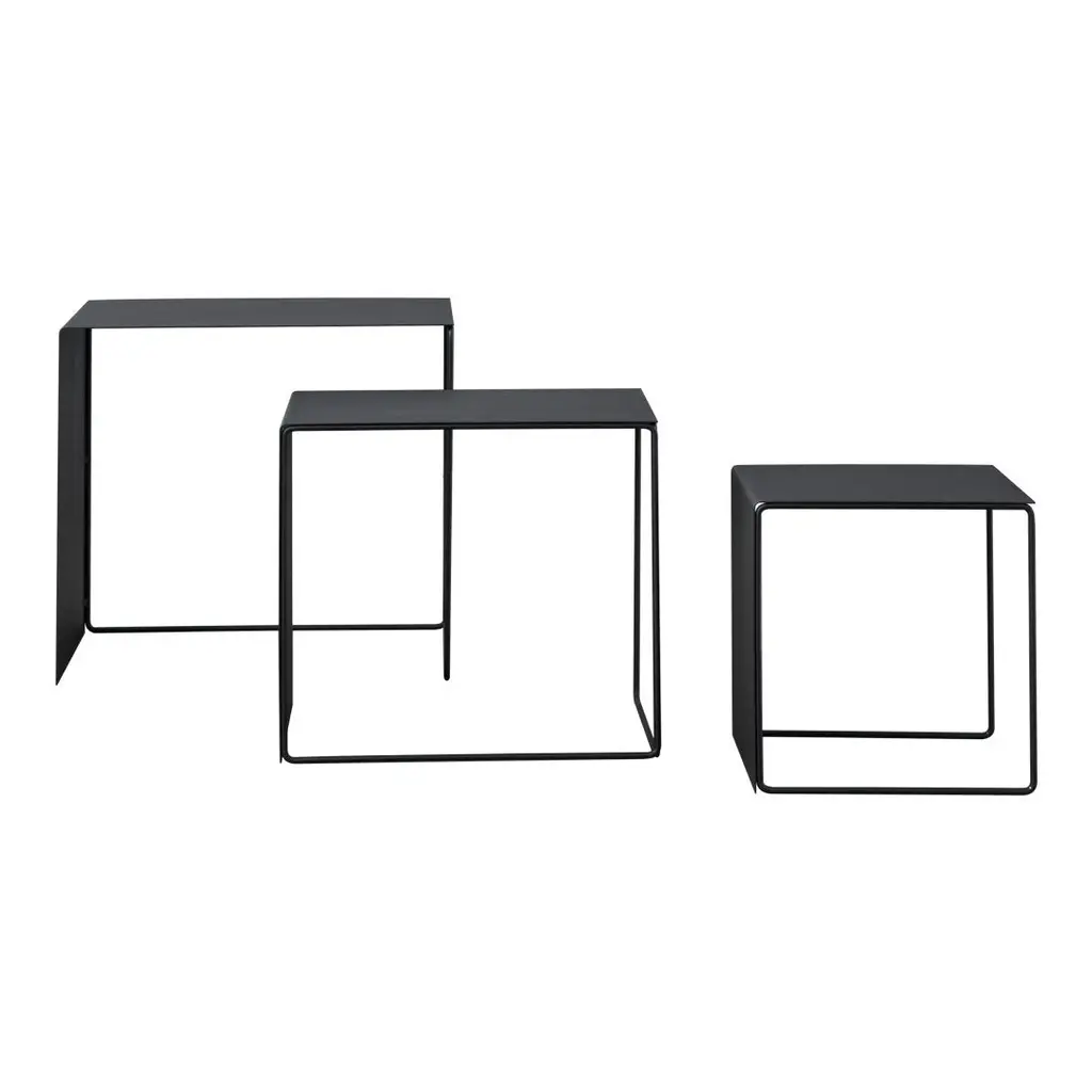 Straight lines and square shapes meet in the contrast between the delicate and thin metal legs and the solid surfaces, in a minimalistic and timeless design. Clean and stylish whether you choose to use the 3 tables nested together, freestanding in a group or placed separately in different rooms of the house. Made in powder coated metal the tables are relatively light not only in their look, but also in the sense that you can easily move them around and play with the many combinations we have built into the design.