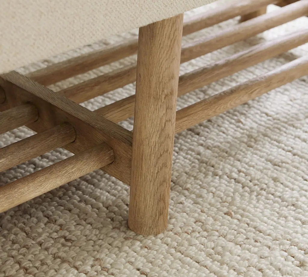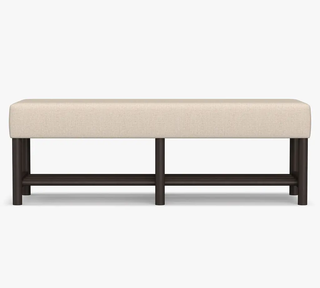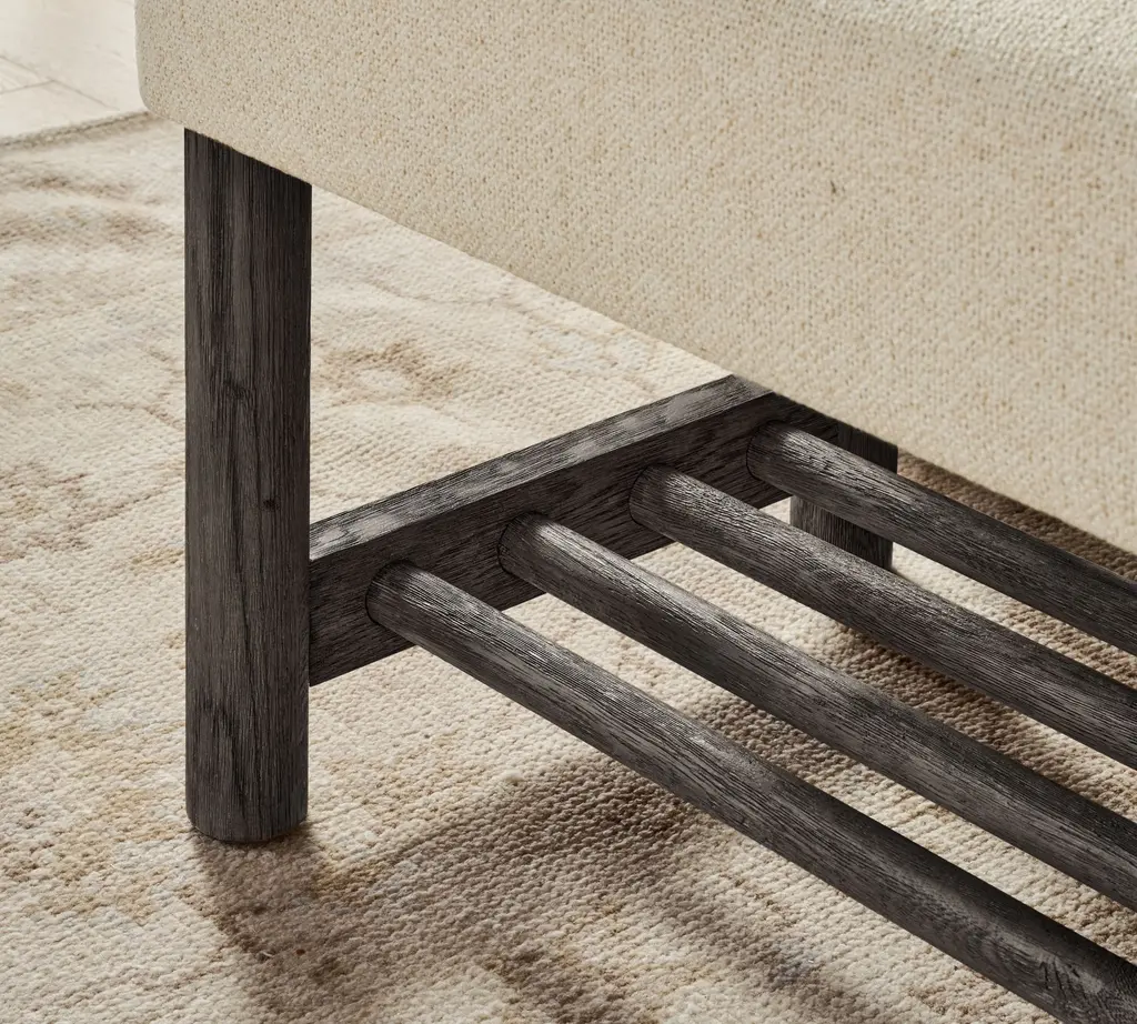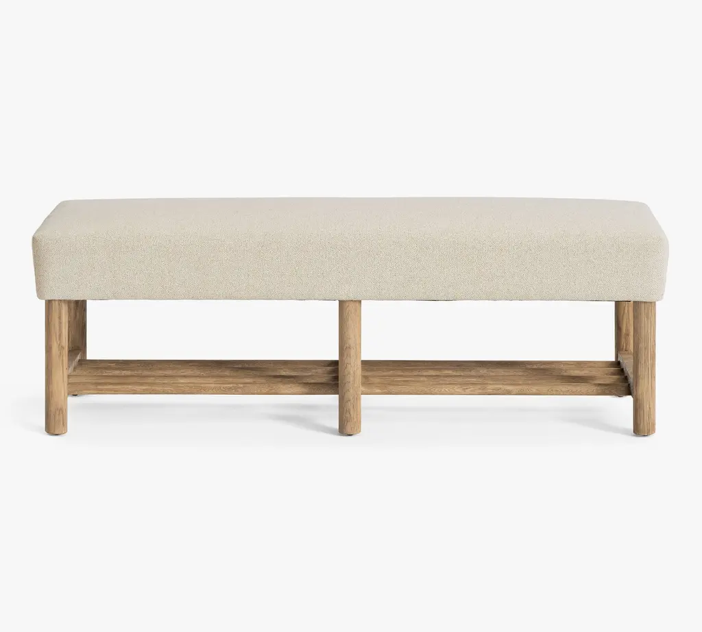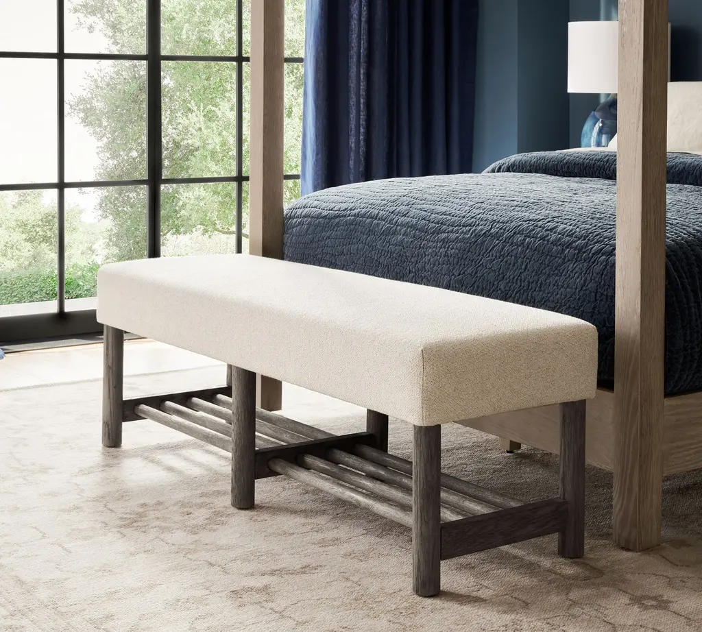 A classic silhouette meets lounge-worthy comfort in the Clyde Collection. The expertly crafted wood frame features generous padding in your choice of upholstered fabrics, adding a modern farmhouse look to the end of a bed or living room. A pallet shelf provides a stylish storage solution for anything from shoes to out-the-door accessories.