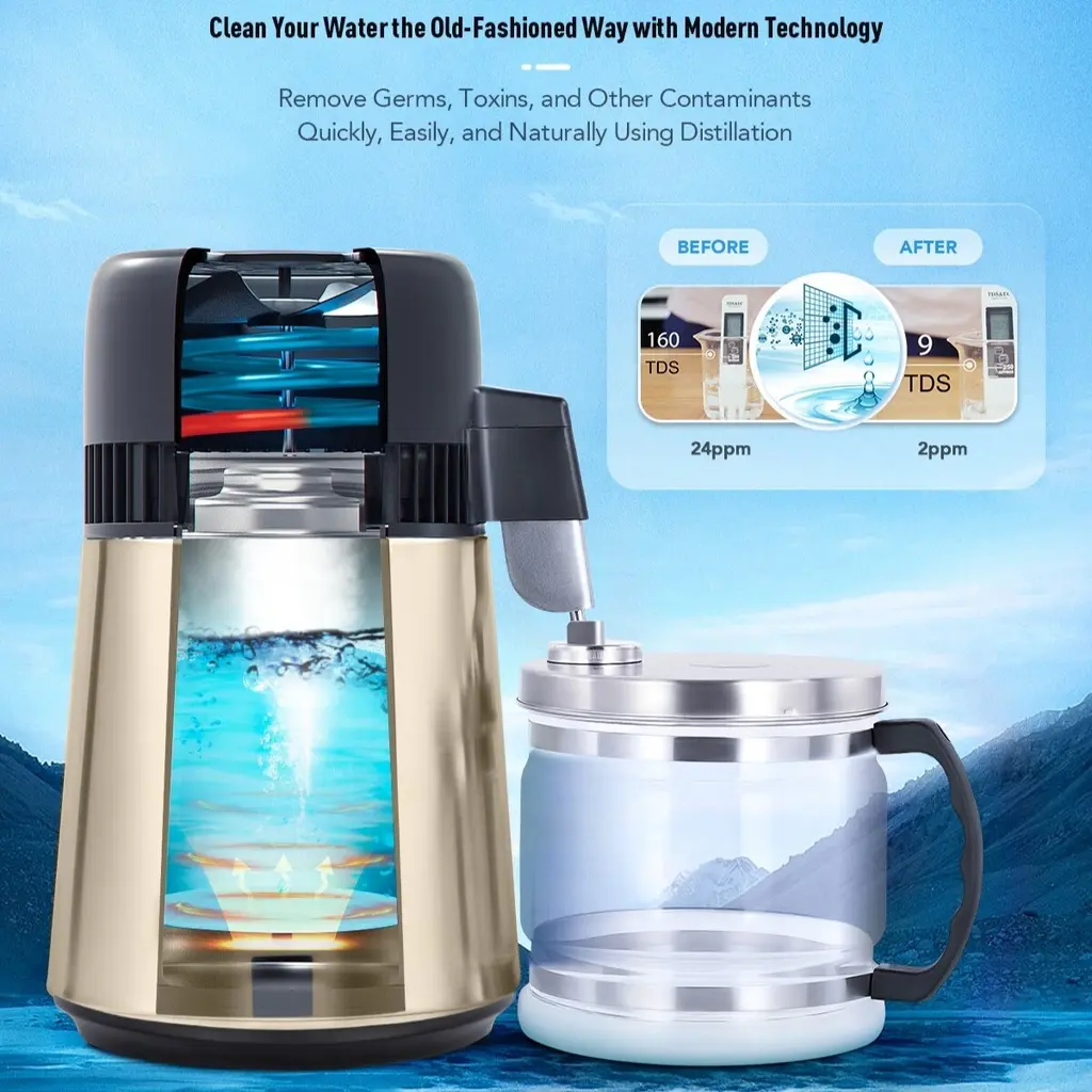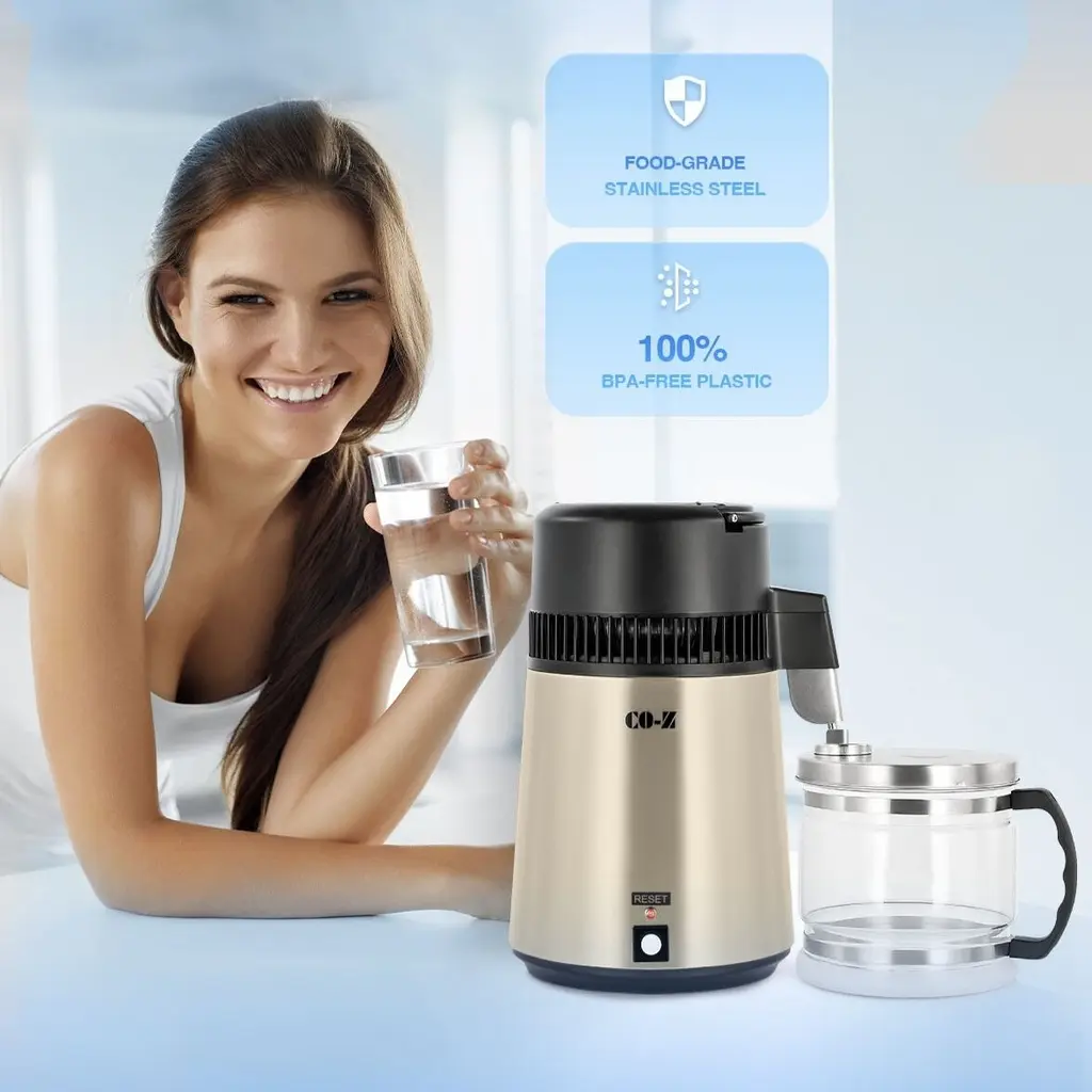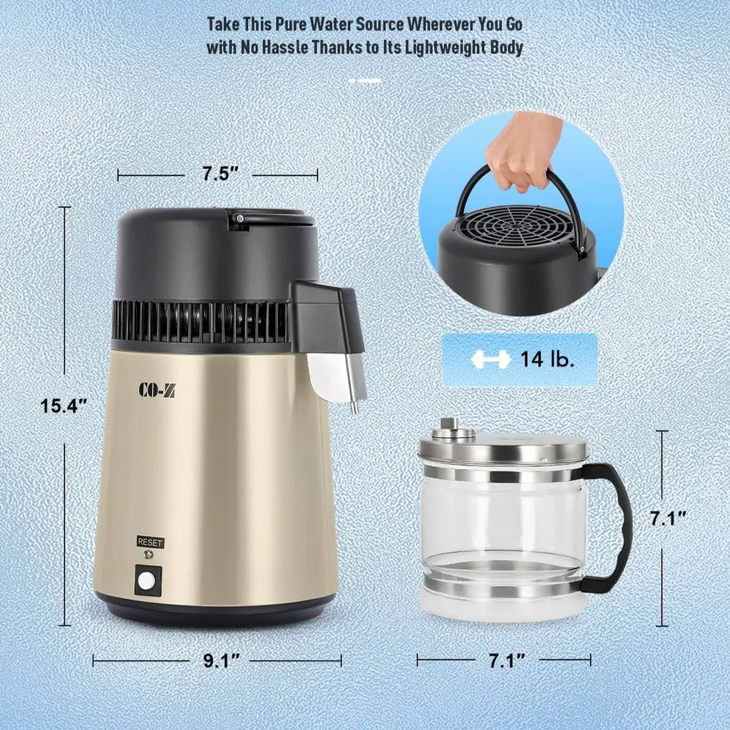 Co-Z 1.1 Gallon Countertop Water Distiller 750w Distilled Water Machine Bpa Free - Gold