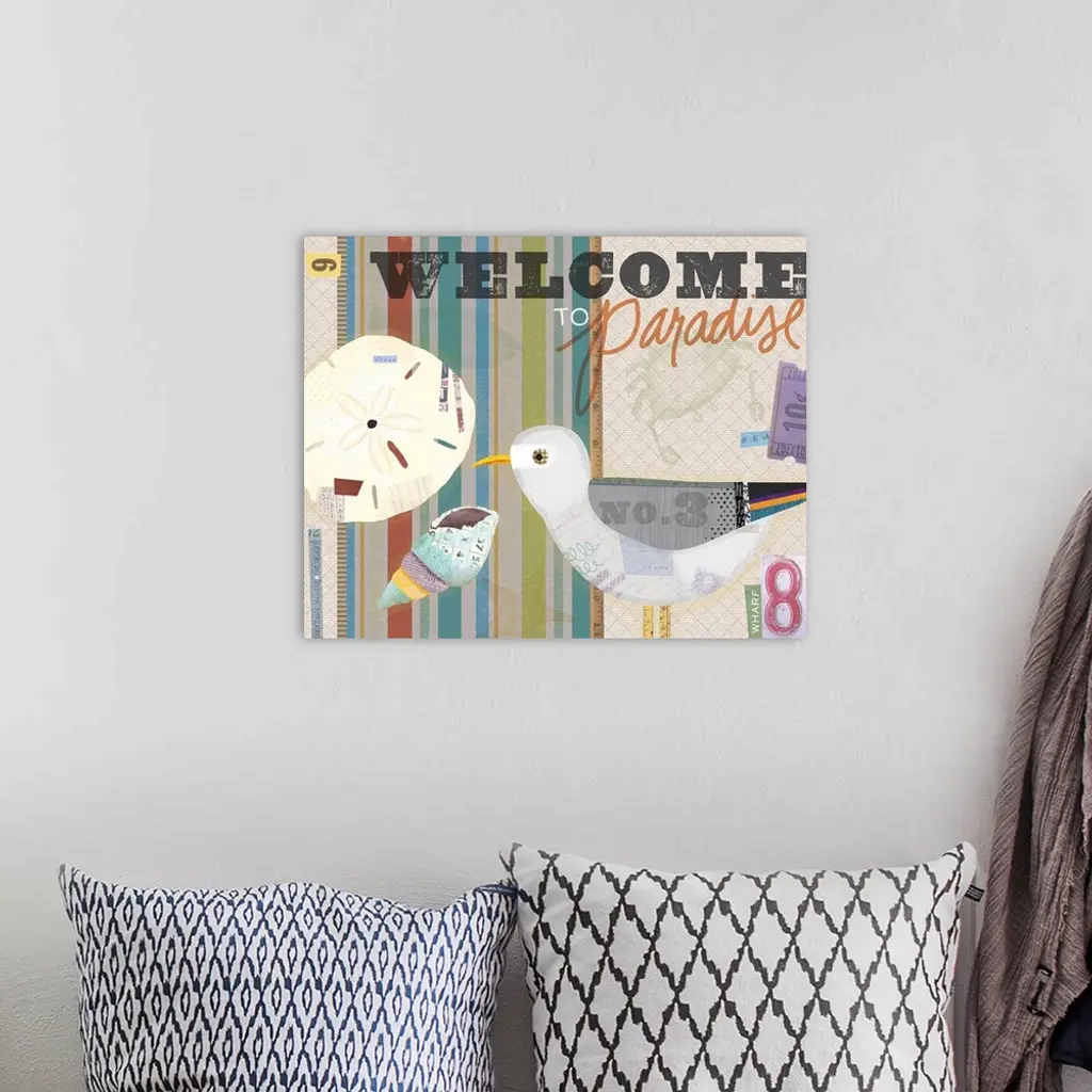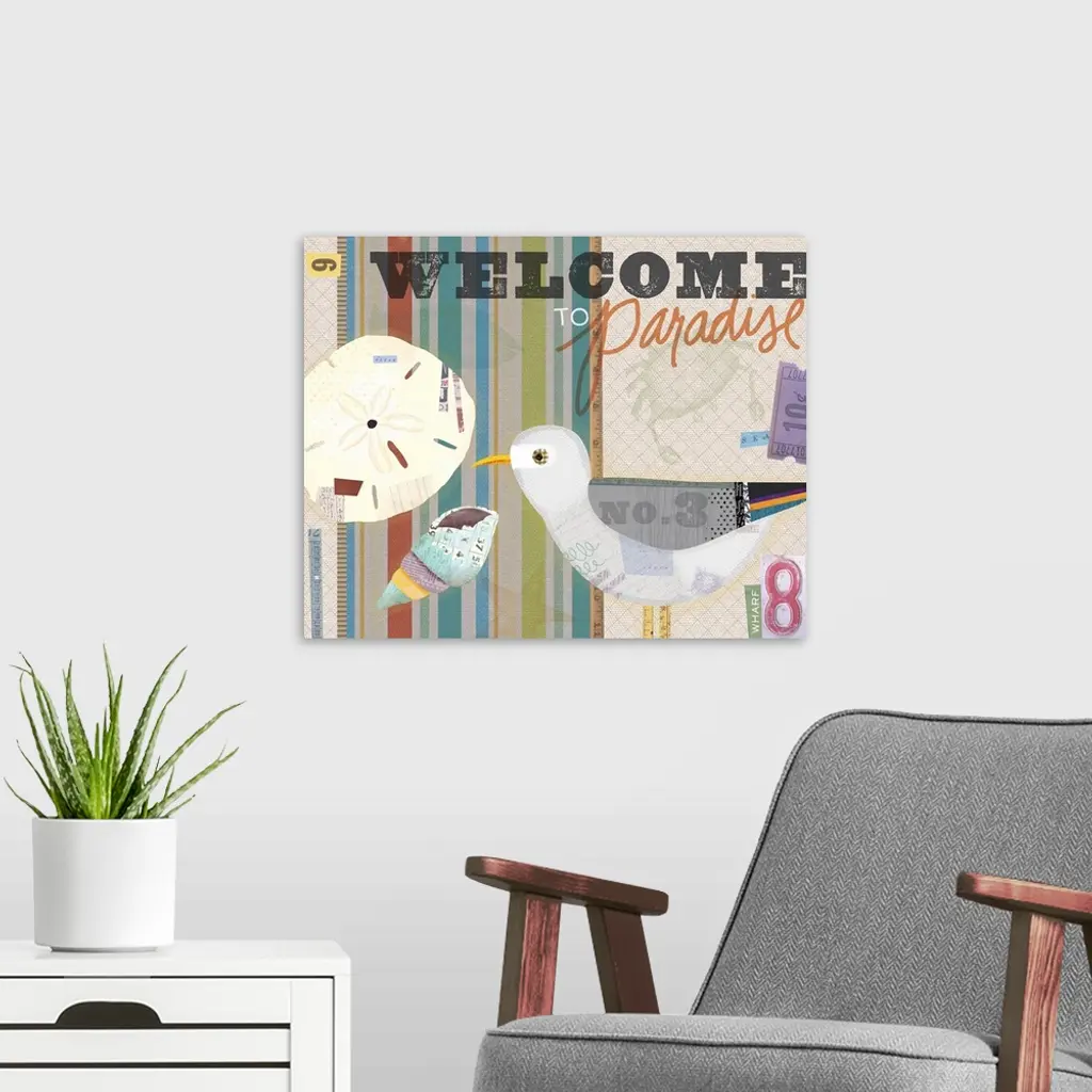 Collage take on familiar coastal motifs, in a quirky wonderfly style