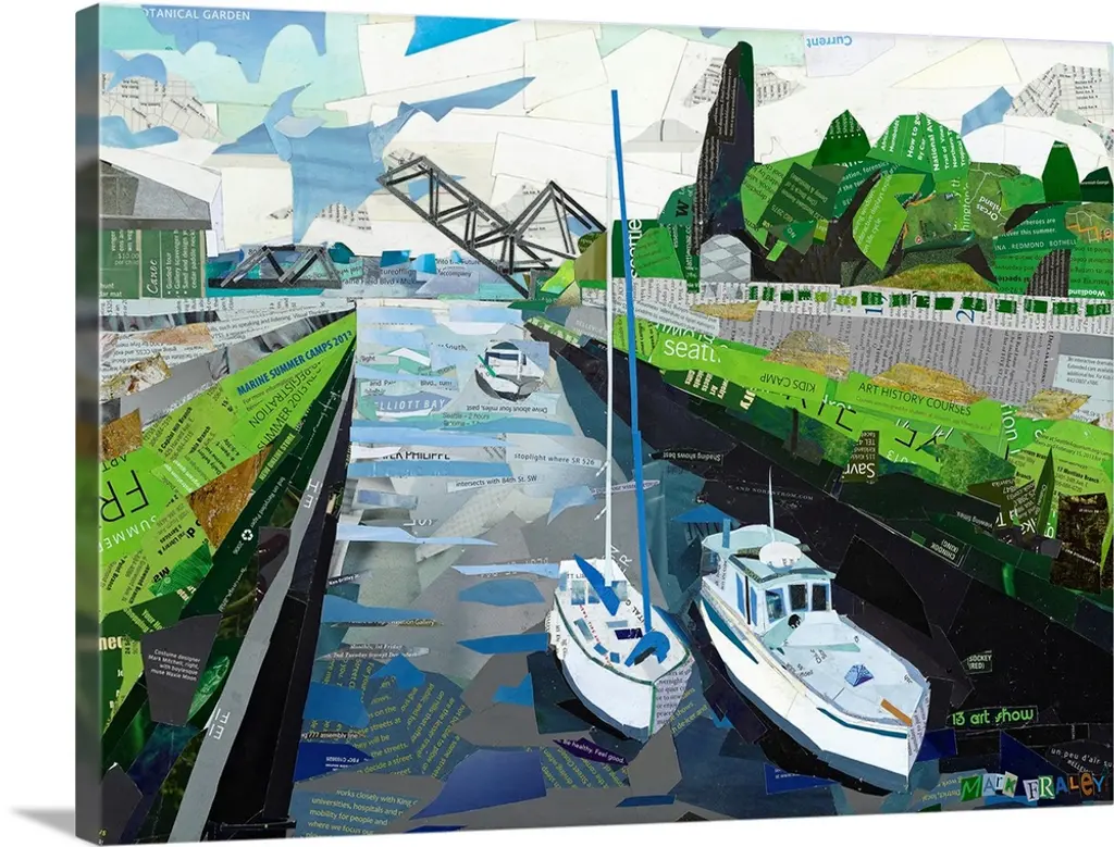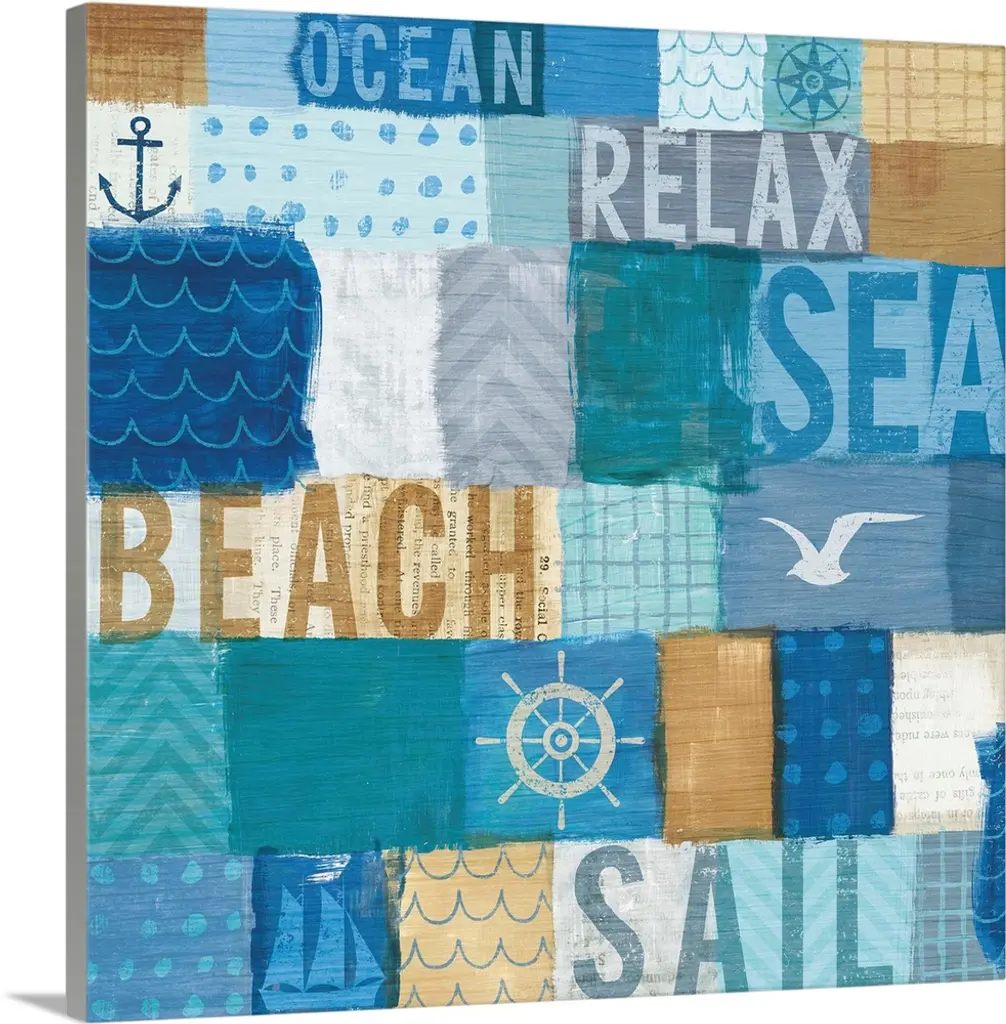 Collage take on familiar coastal motifs, in a quirky wonderfly style