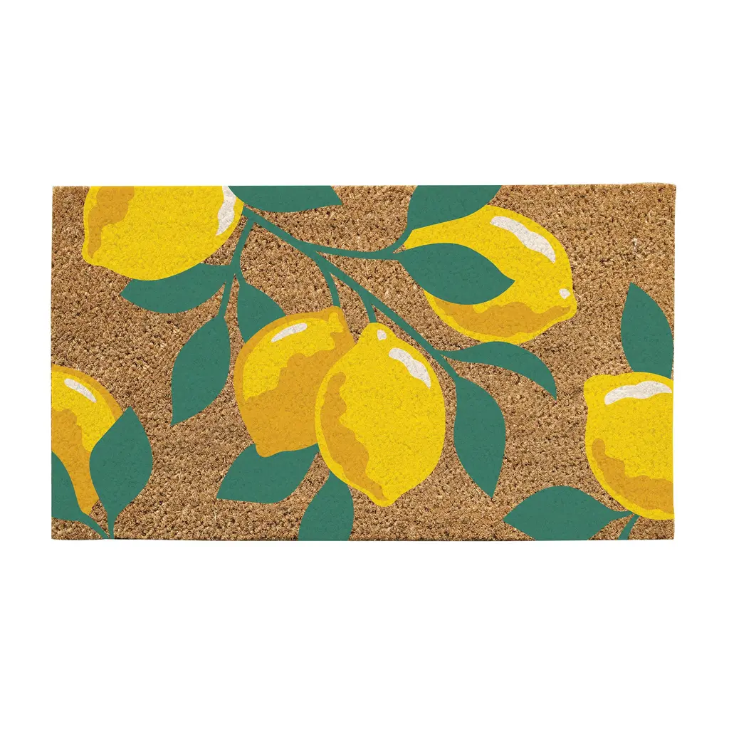 Offer guests a sweet greeting this spring with this coir mat. Perfect for adding a bit of whimsy to any entryway, this welcoming design features a stunning lemon pattern. Crafted from coco husk fiber, the eye-catching mat is natural and eco-friendly. Ideal for high-traffic areas, the mat traps dirt and debris to prevent messes from being tracked into homes. Designs are printed directly on the mats with fade-resistant dyes. Since the mat is crafted from natural coir, some shedding is to be expected. Shake off excess fibers or use a soft brush to gently sweep.