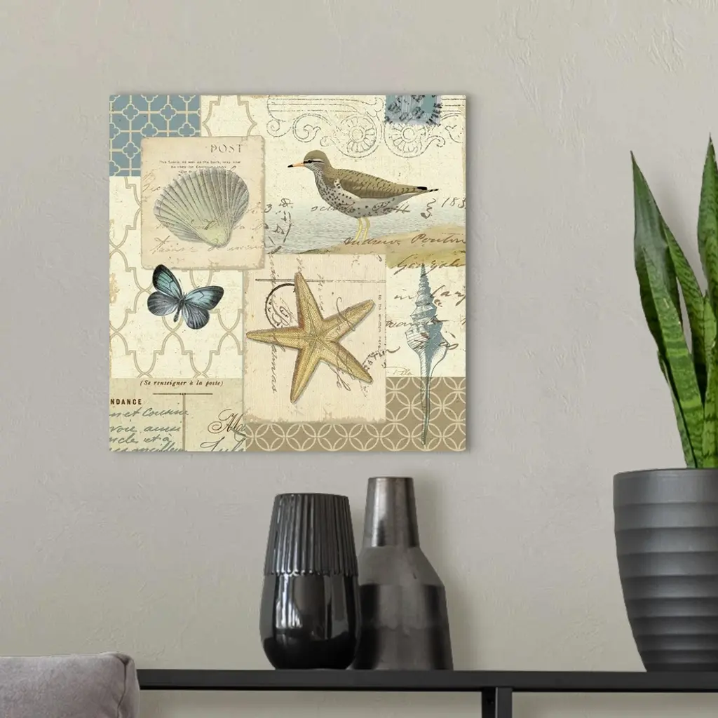 Coastal Collage IV wall art for home and office decor. Discover canvas art prints, photos, mural, big canvas art and framed wall art in GreatBigCanvas.com's varied collections.