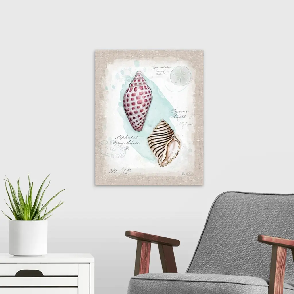 Classic coastal botanical painting celebrates the beauty of the sea.