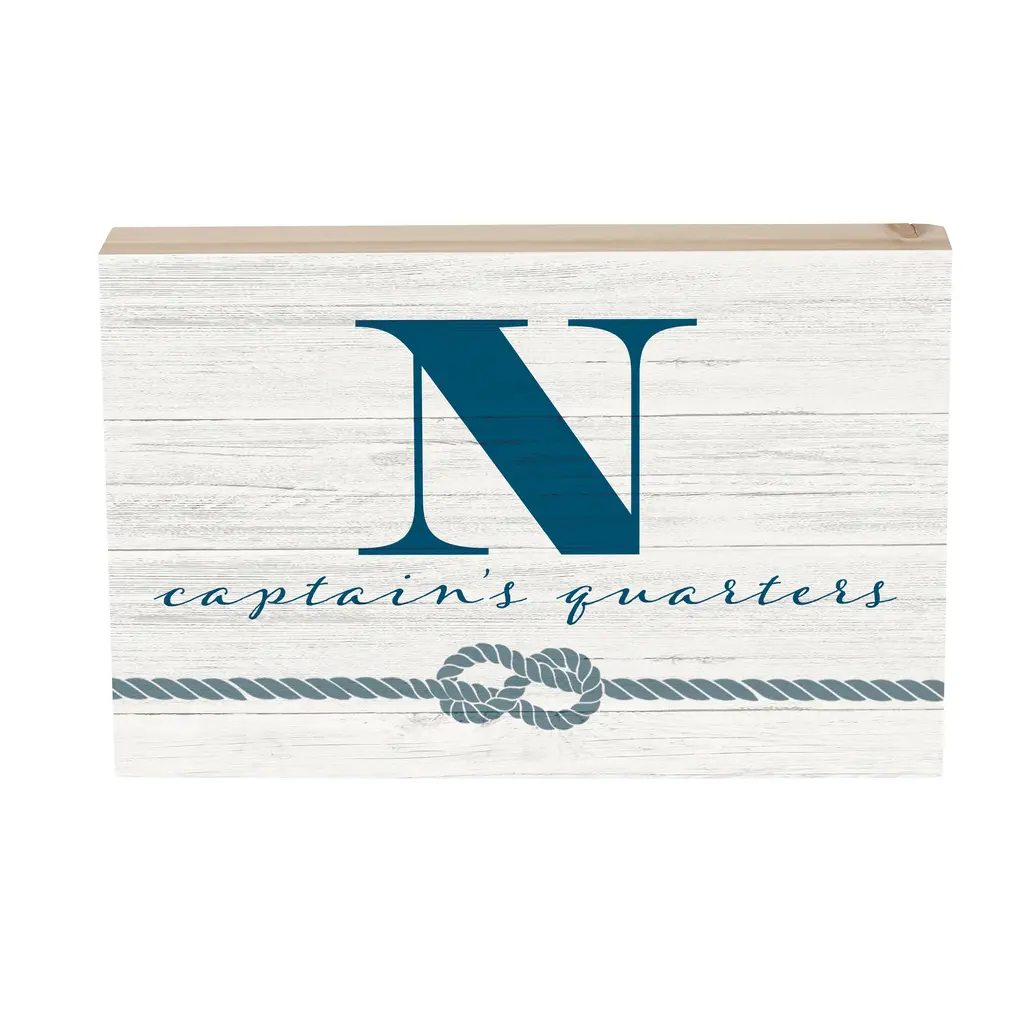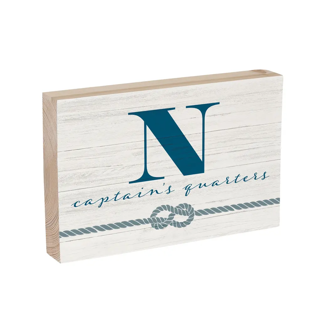 Coastal Monogram Captain Sign Wood Block "N",12"l X 8"h