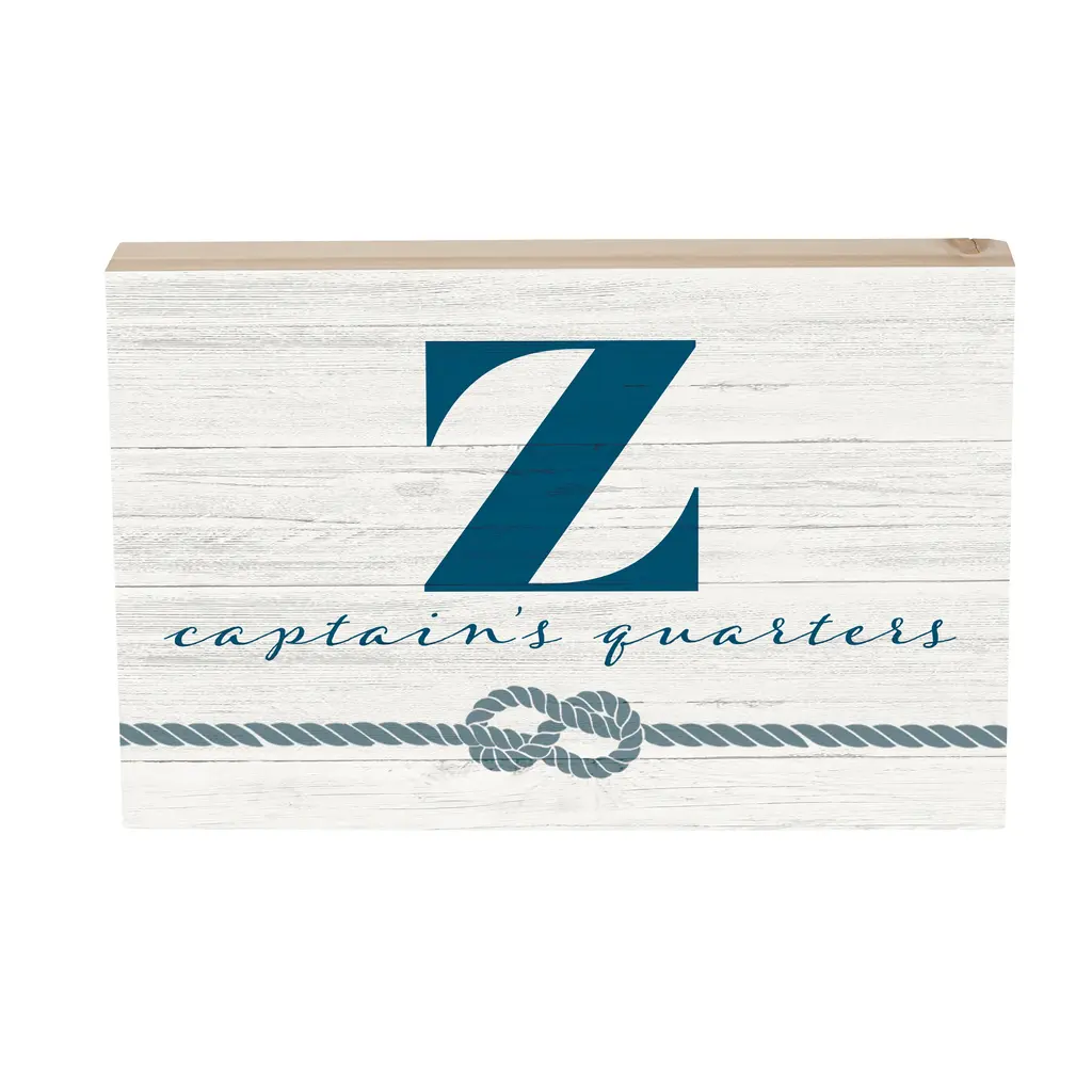 Coastal Monogram Captain Sign Wood Block "Z",12"l X 8"h