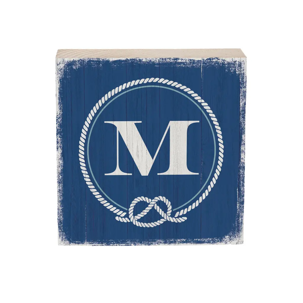 Coastal Monogram Nautical Sign Wood Block "M", 6"x6"