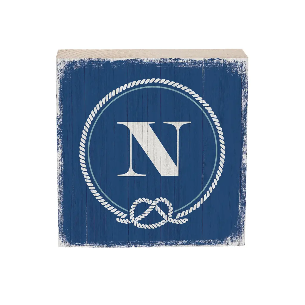 Coastal Monogram Nautical Sign Wood Block "N", 6"x6"