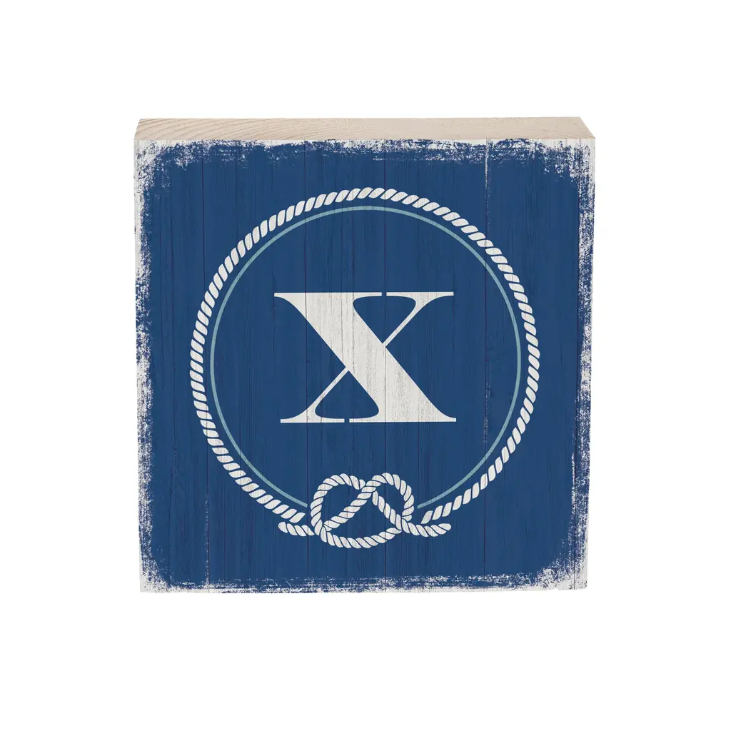 Coastal Monogram Nautical Sign Wood Block "X", 6"x6"