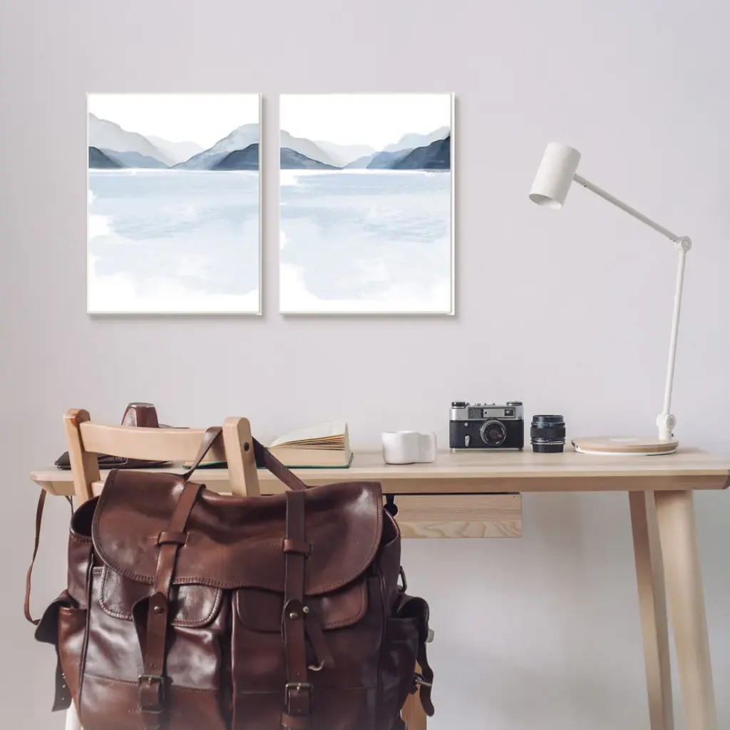 Coastal Mountain Range Landscape Soft Watercolor Blue Scene,13 X 19