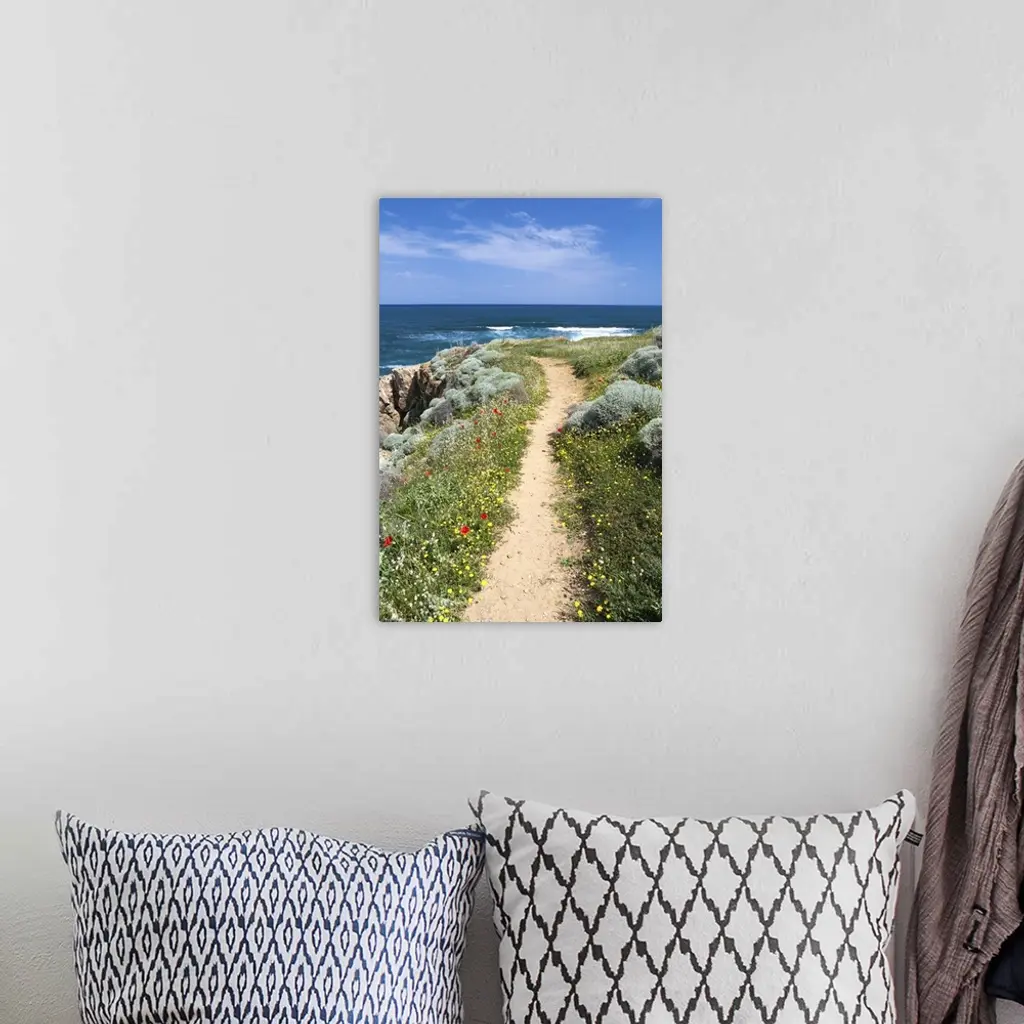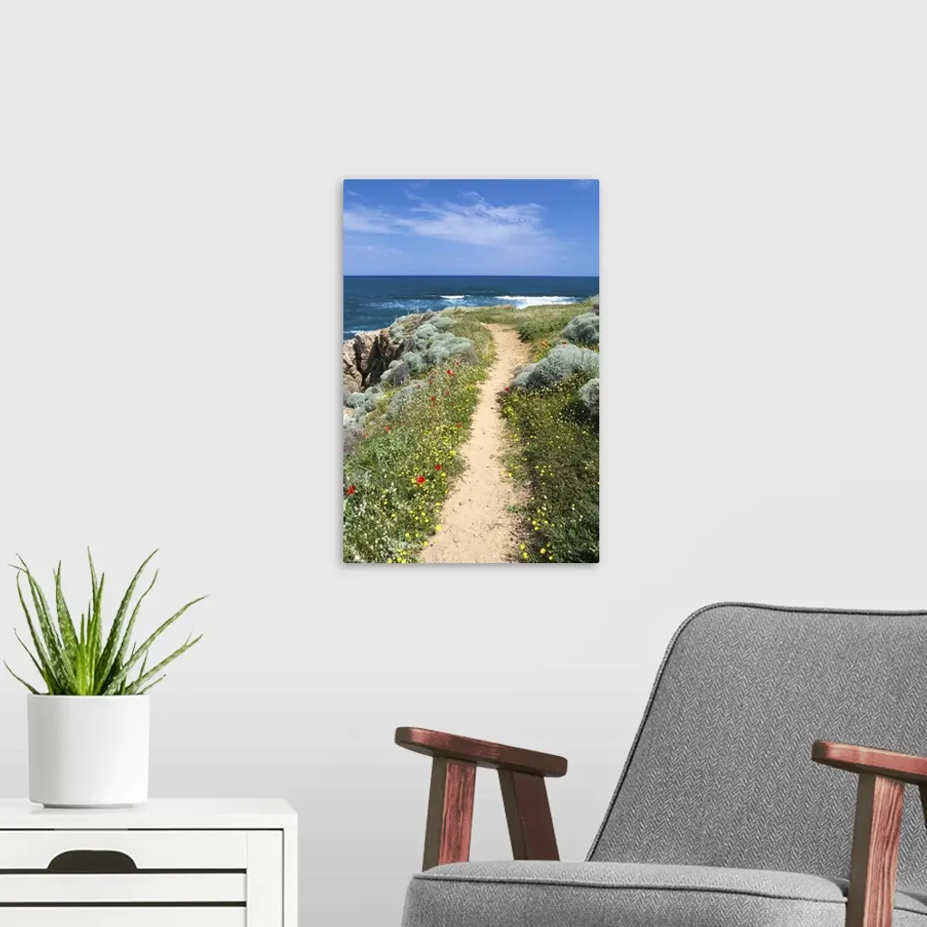 Coastal path with spring flowers, near Chania, Crete, Greece wall art for home and office decor. Discover canvas art prints, photos, mural, big canvas art and framed wall art in GreatBigCanvas.com's varied collections.