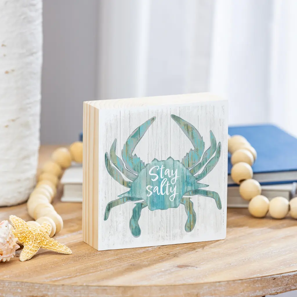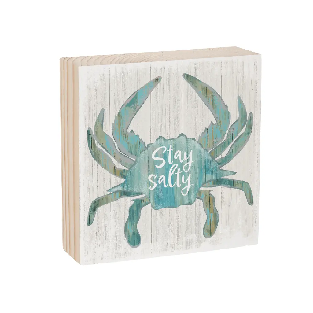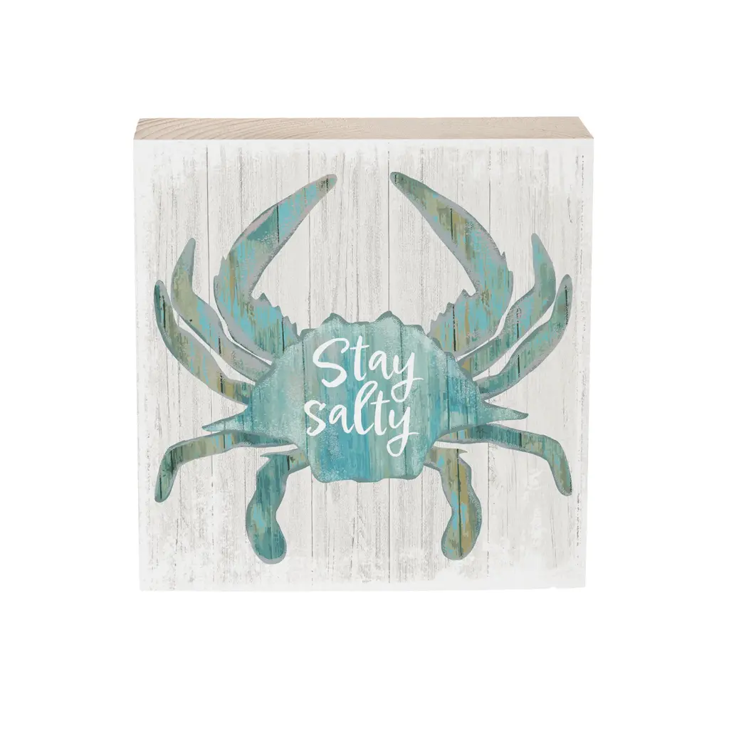 Coastal Salty Crab Sign Wood Block, 6"x6"