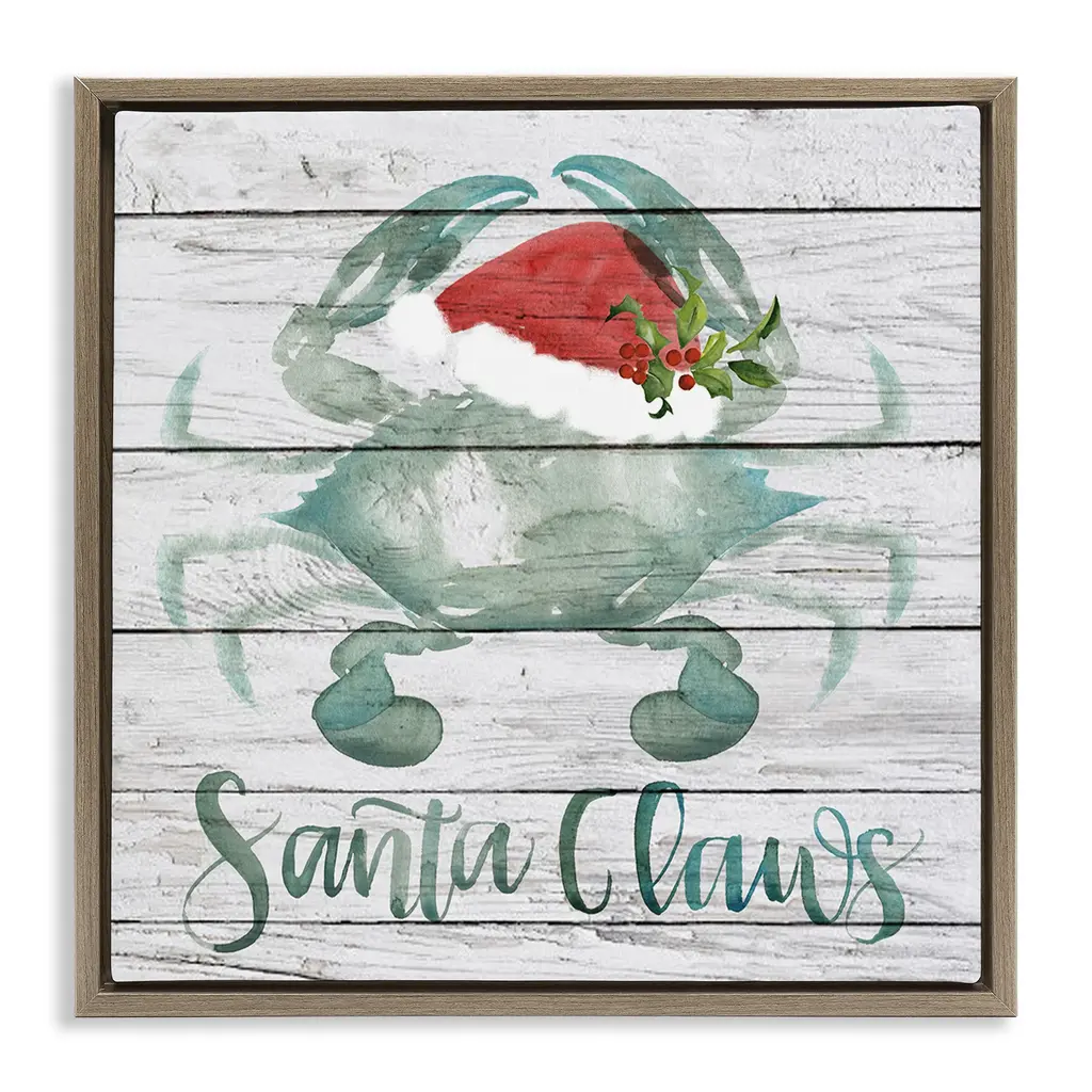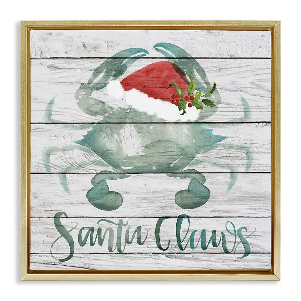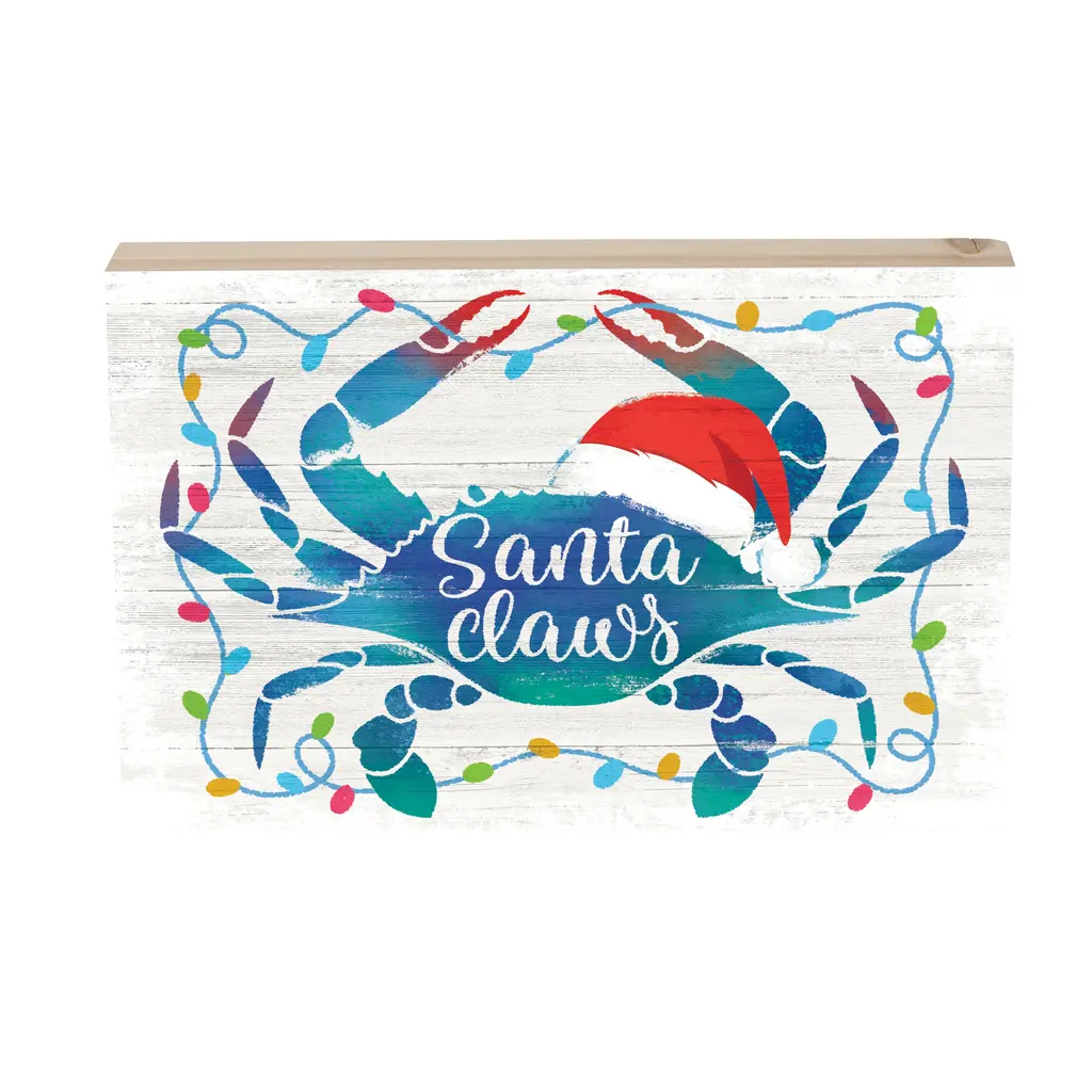 Coastal Sign Wood Block Santa Crab 12"l X 8"h
