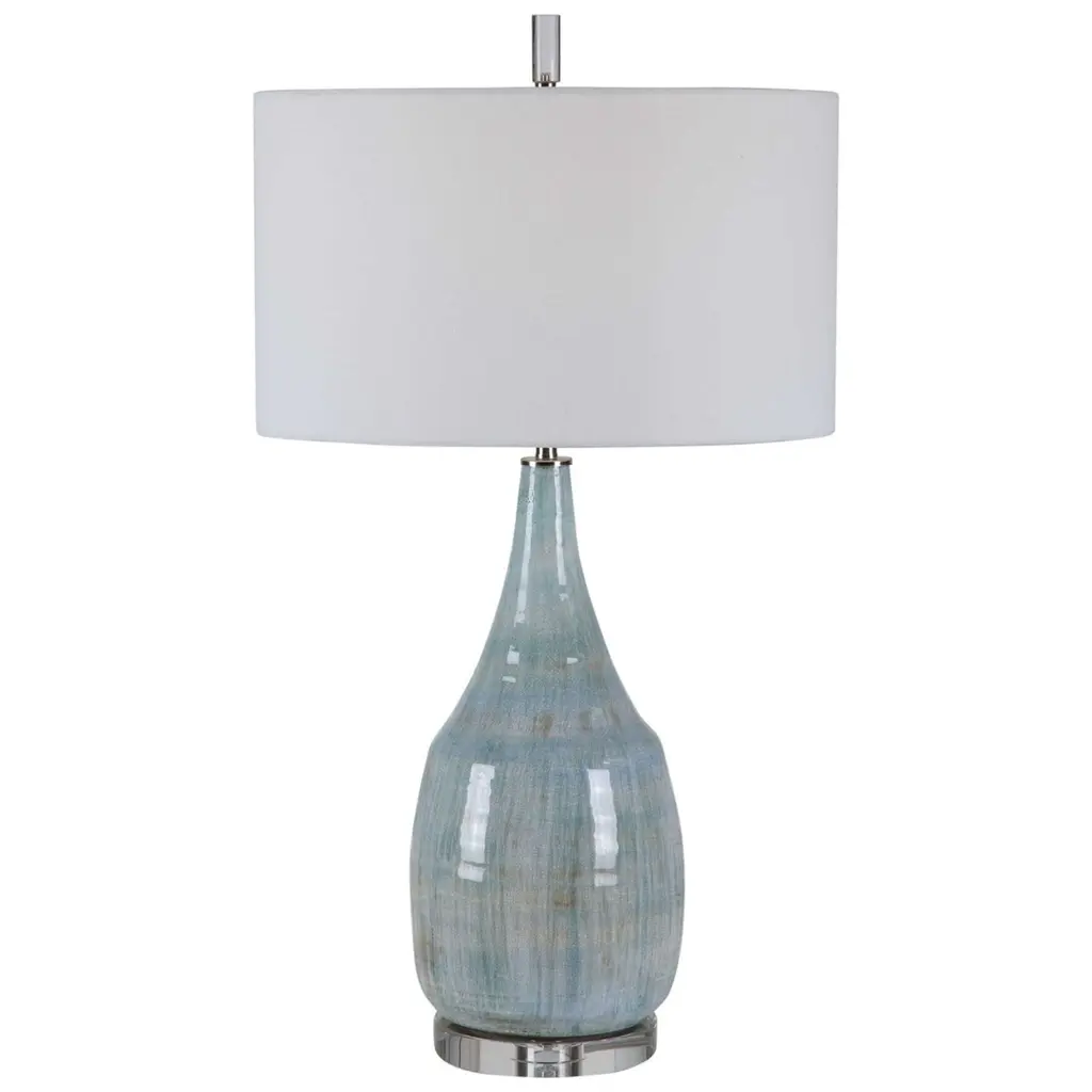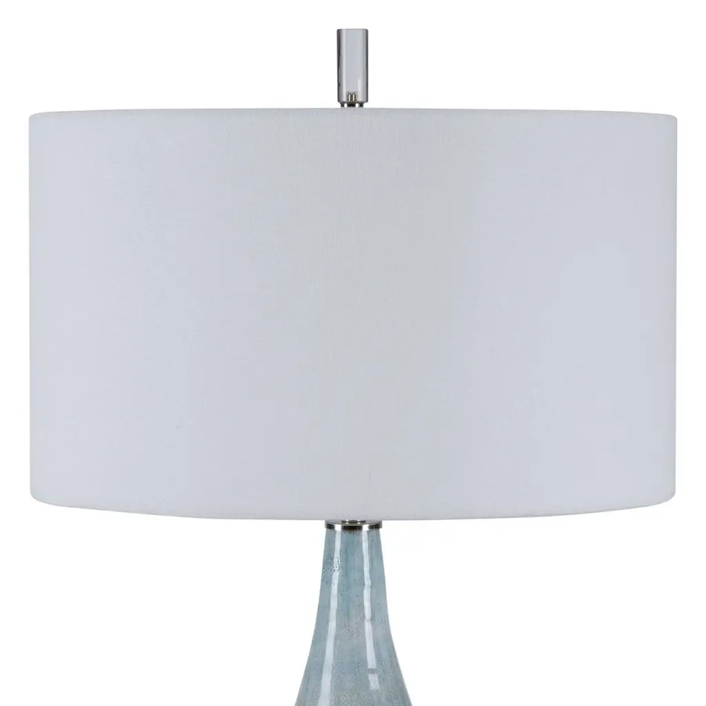 Coastal Style Crackle Glaze Table Lamp With White Drum Shade - 30.5" - Aqua Blue - Blue
