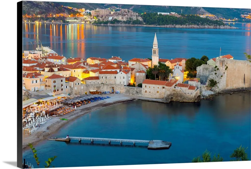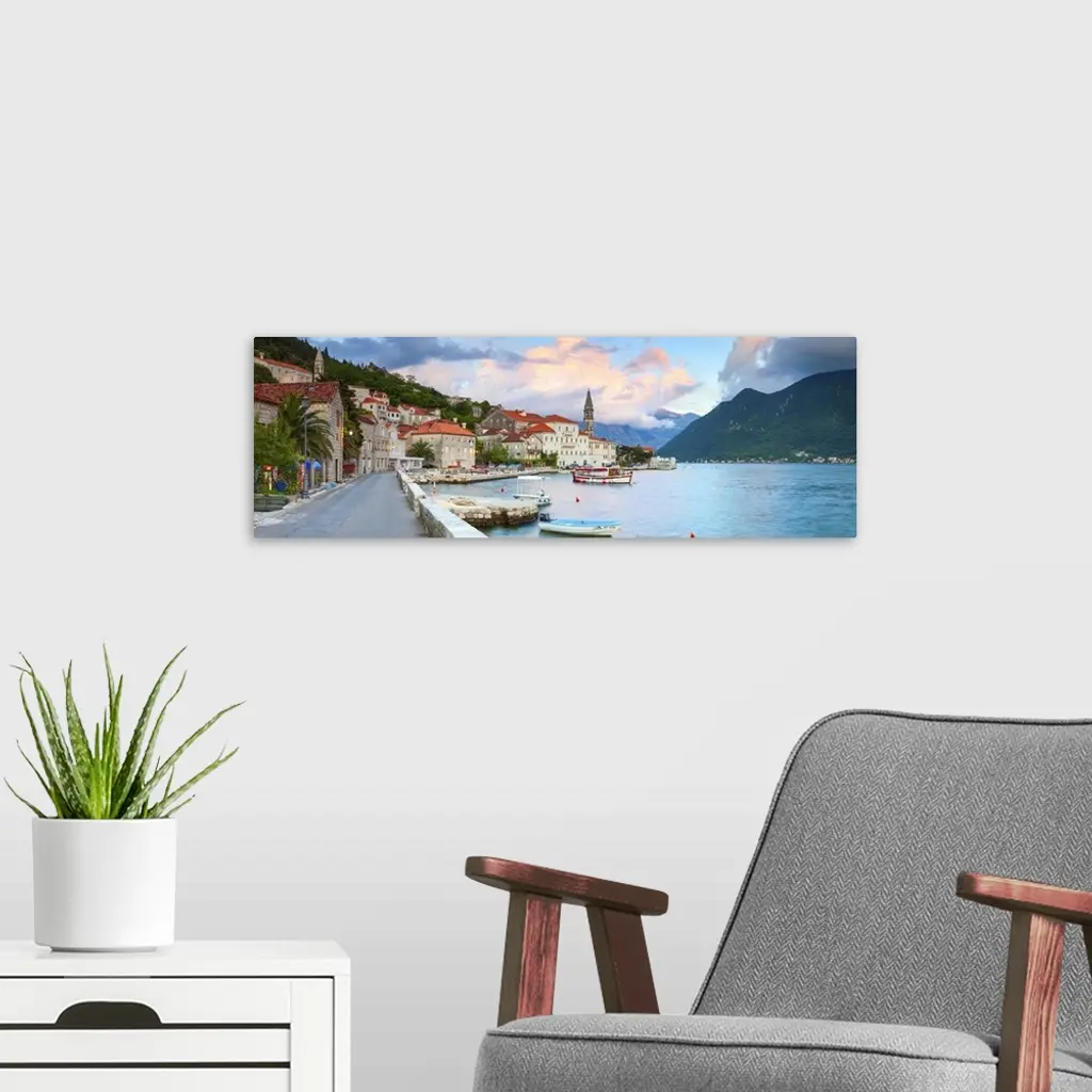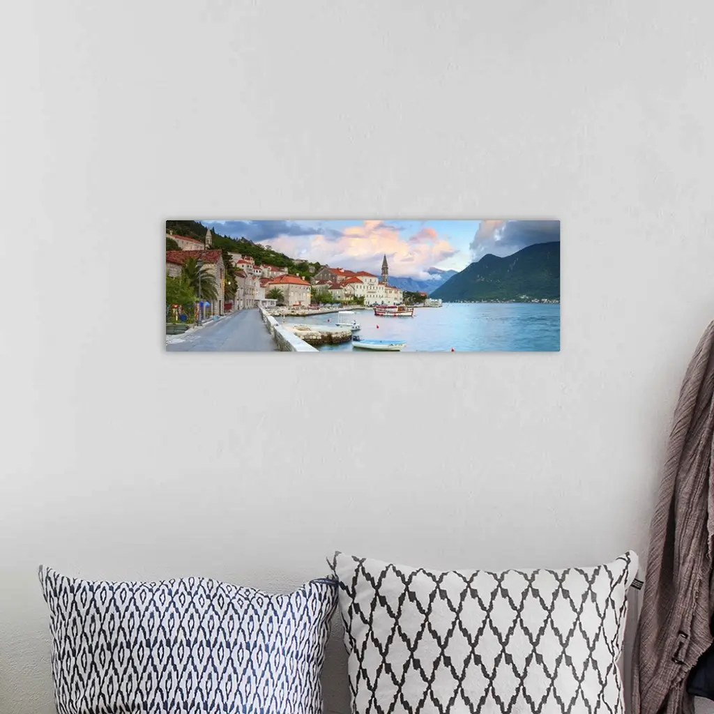 Coastal Village Of Perast Illuminated At Sunset, Bay Of Kotorska, Montenegro
