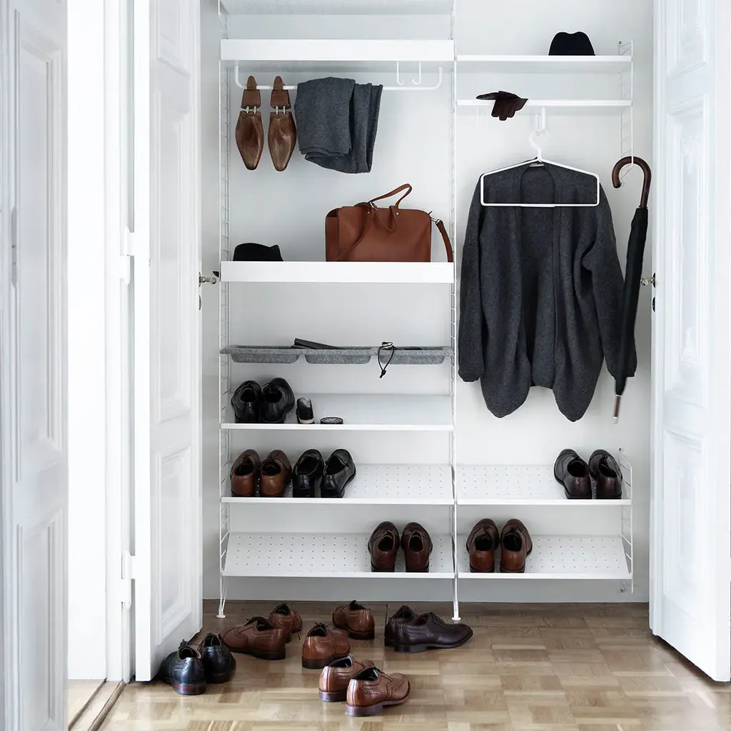 Each packaging contains four coat-hangers. The coat-hanger is part of our range of accessories and was created to be able to offer a complete storage solution for your hallway and wardrobe, where rods often are added. The coat-hanger is designed with one extra wire thread to increase functionality and make it possible to hang several clothing items on one coat-hanger.