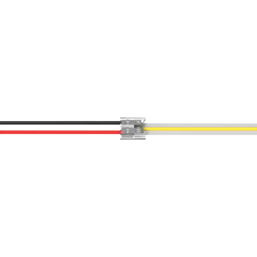 The terminal block connects the COB LED tape light to (2) 60" 18AWG wires. Can be used as a power feed or jumper.Cable Length: 60"Compatible Tape Lights: NUTP14 & NUTP15