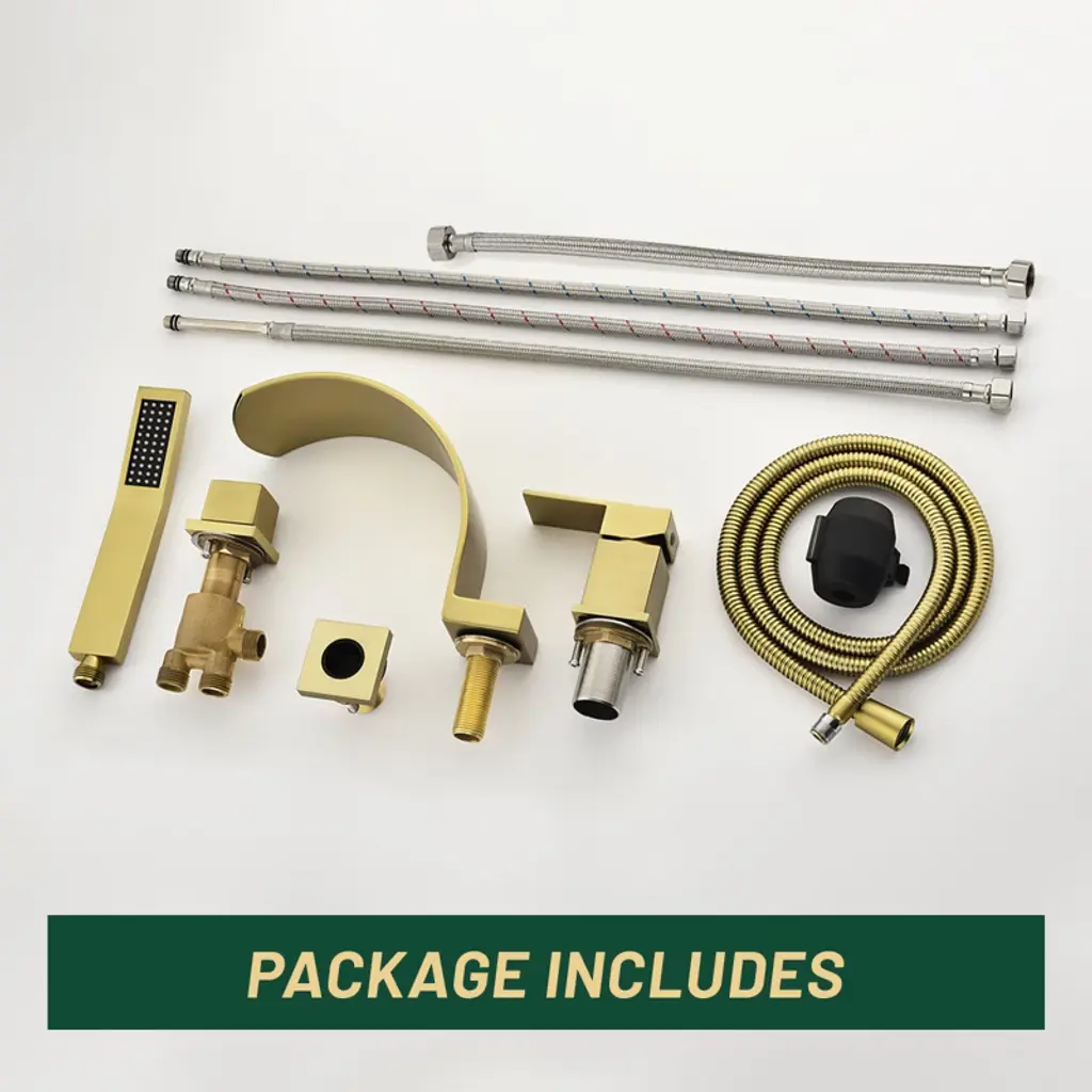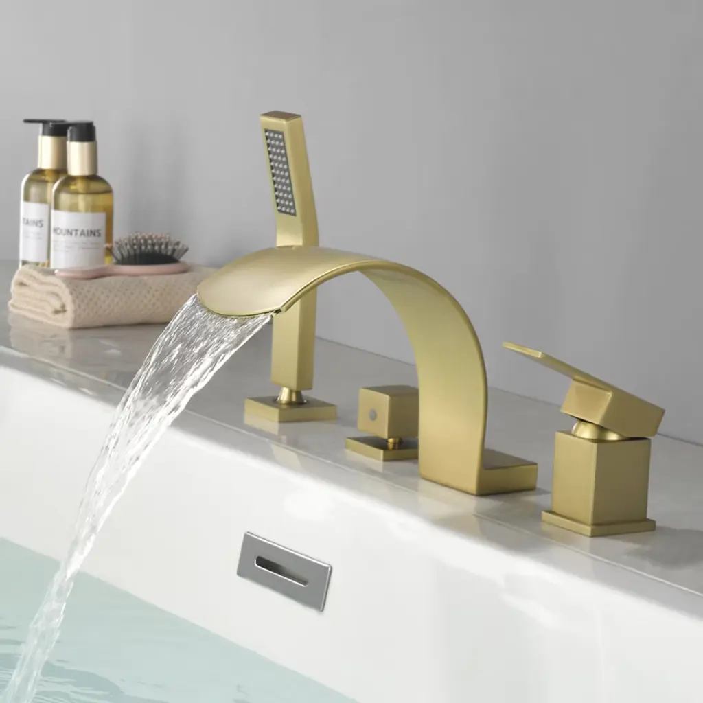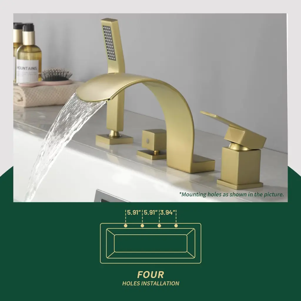 Cobbe Bathroom Tub Faucet Set With Handheld Shower And 3.78-inch Wide Tub Spout Single Handle Control 4-hole Installation Brushed Gold