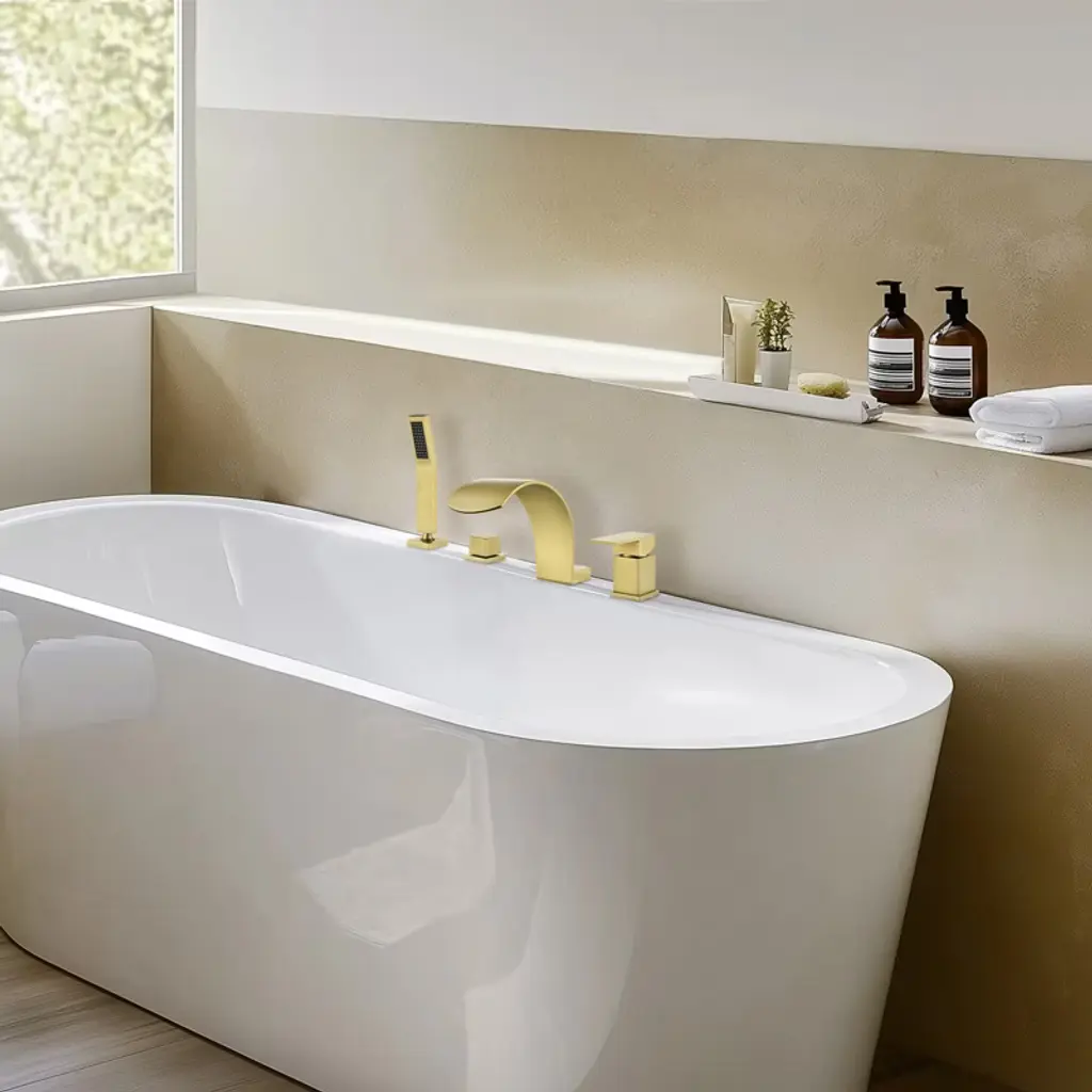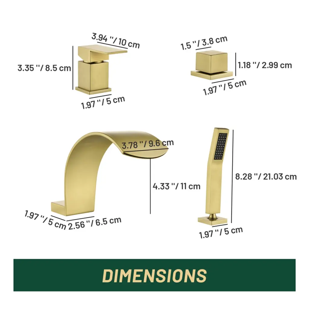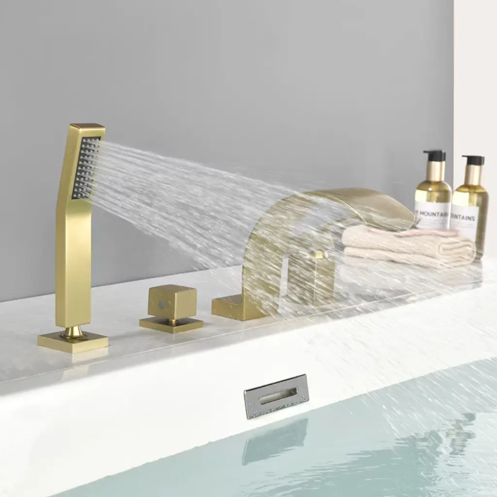 Cobbe Bathroom Tub Faucet Set With Handheld Shower And 3.78-inch Wide Tub Spout Single Handle Control 4-hole Installation Brushed Gold