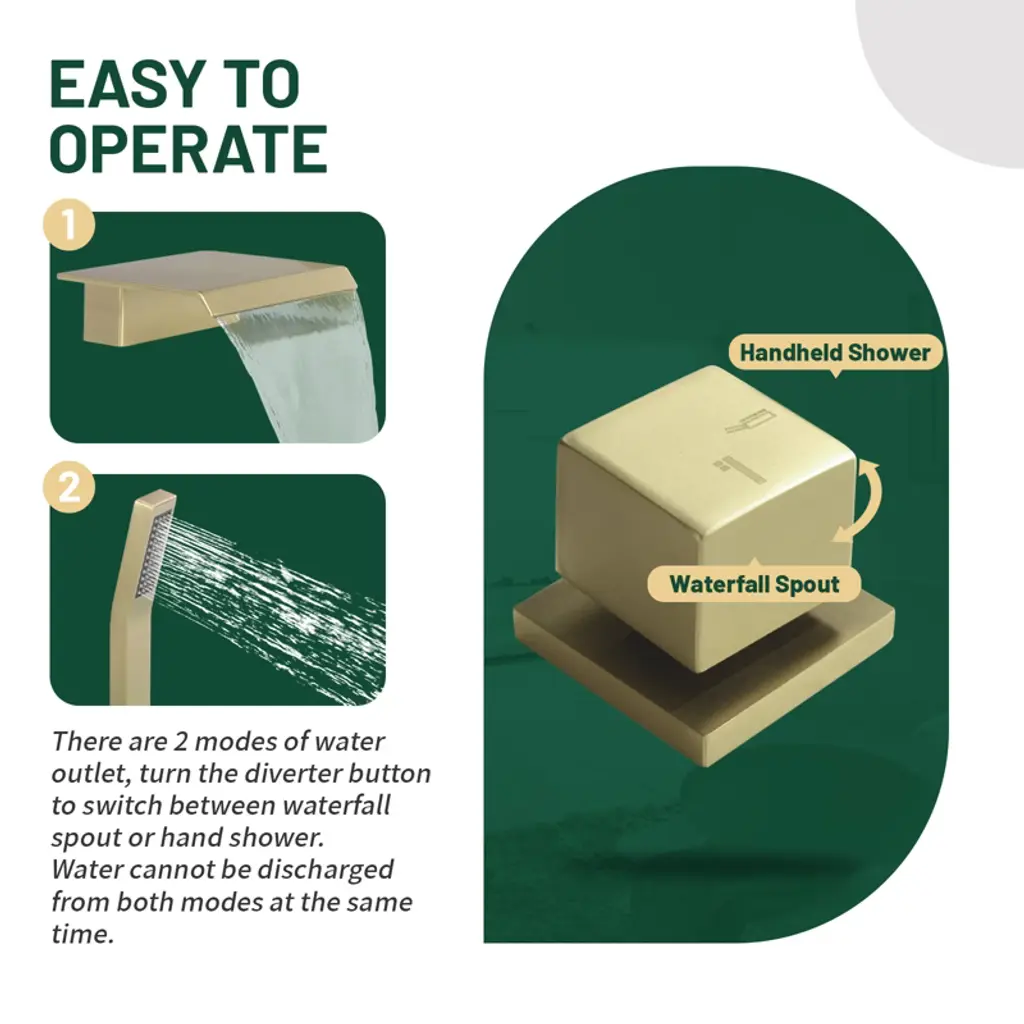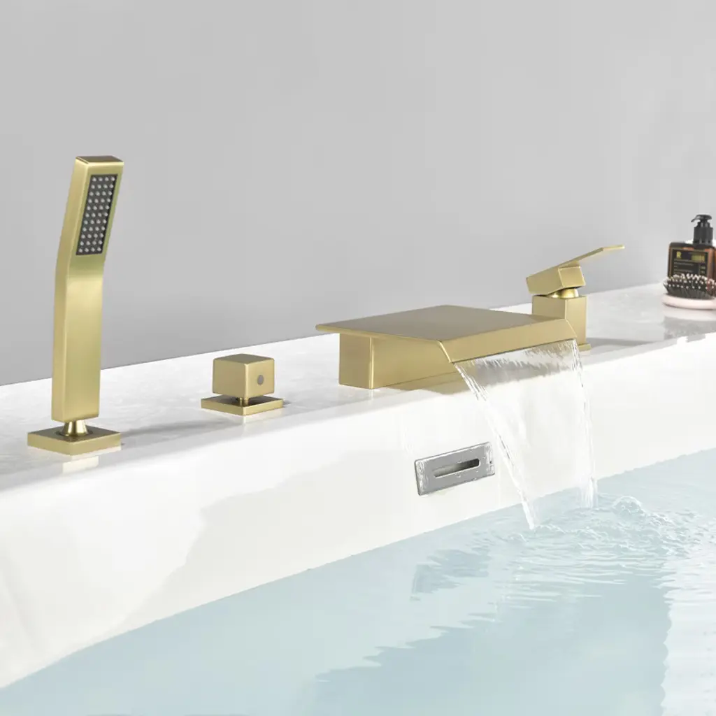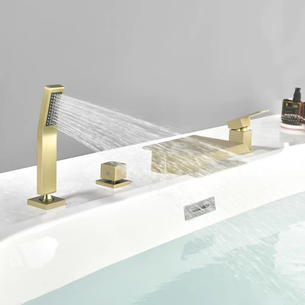 Cobbe Brushed Gold Bathroom Tub Faucet With Handheld Shower And 7.87-inch Wide Waterfall Tub Filler Single Handle 4-hole Installation