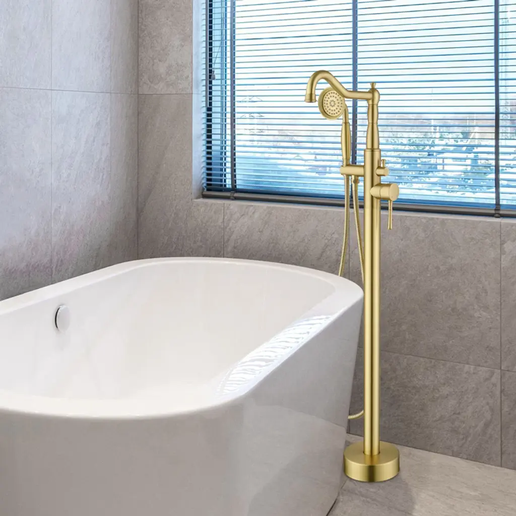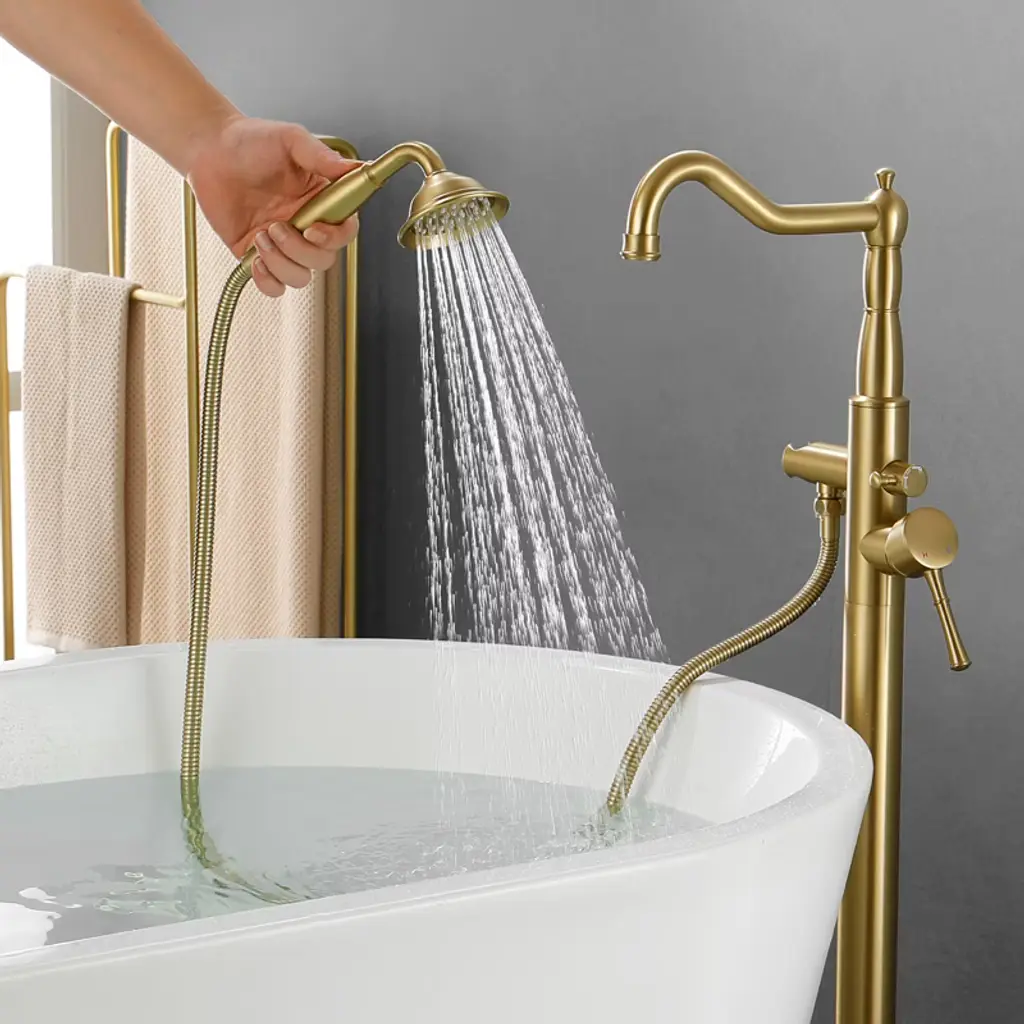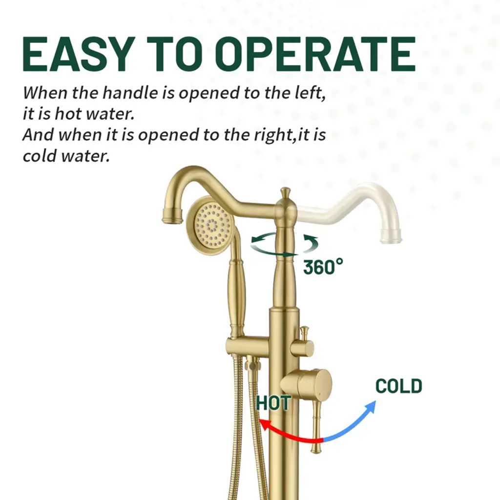 This freestanding floor standing bathtub faucet is made of high quality material, durable and stable performance.Meanwhile, it adopts American style appearance design, elegant, fashionable and beautiful, which can be easily integrated into different styles of bathrooms, equipped with a handheld shower, so that you can be more free and flexible when bathing.