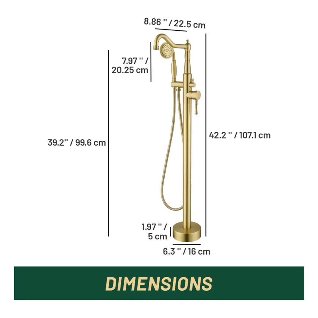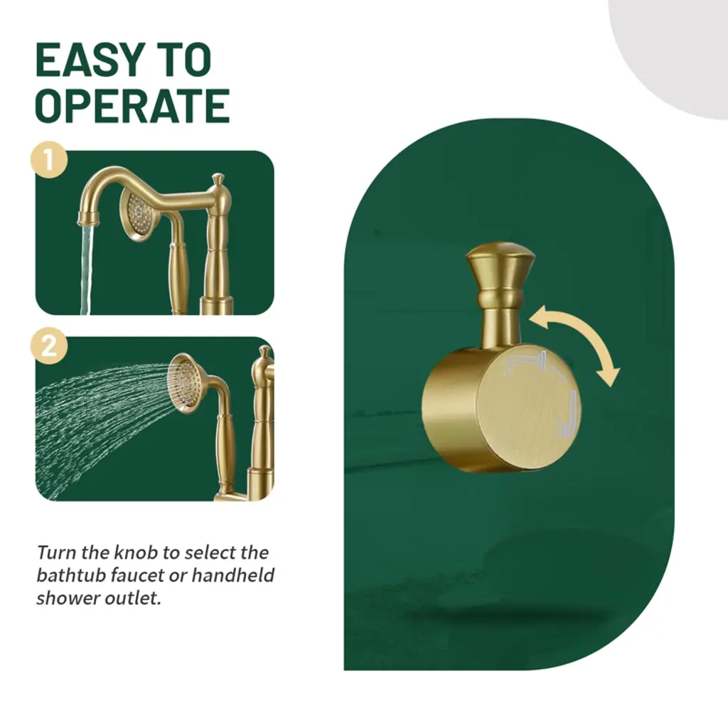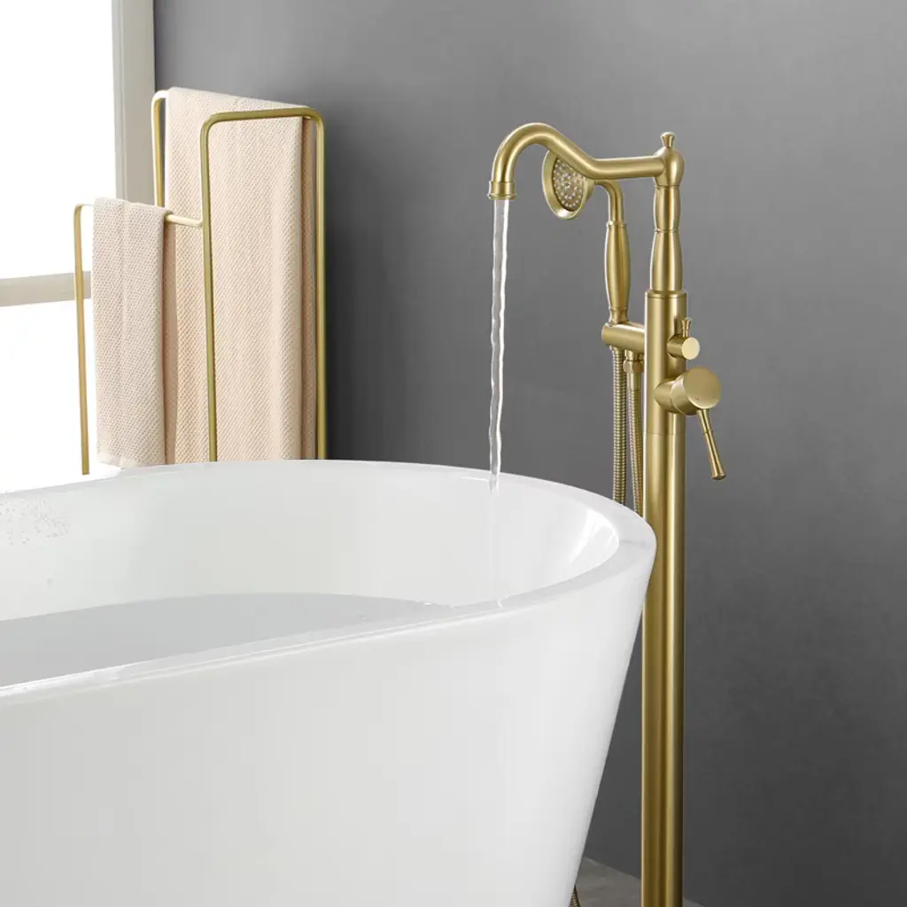 This freestanding floor standing bathtub faucet is made of high quality material, durable and stable performance.Meanwhile, it adopts American style appearance design, elegant, fashionable and beautiful, which can be easily integrated into different styles of bathrooms, equipped with a handheld shower, so that you can be more free and flexible when bathing.