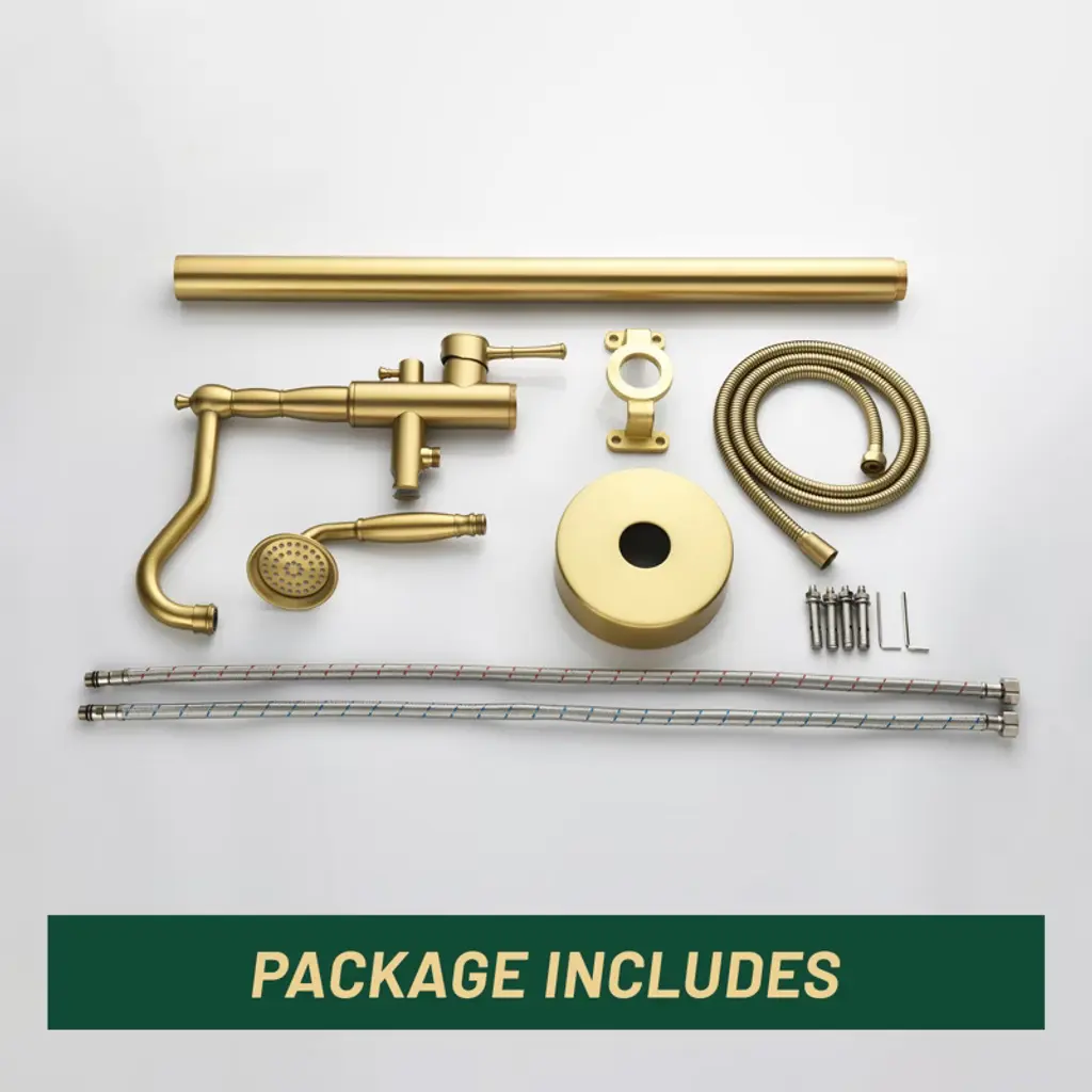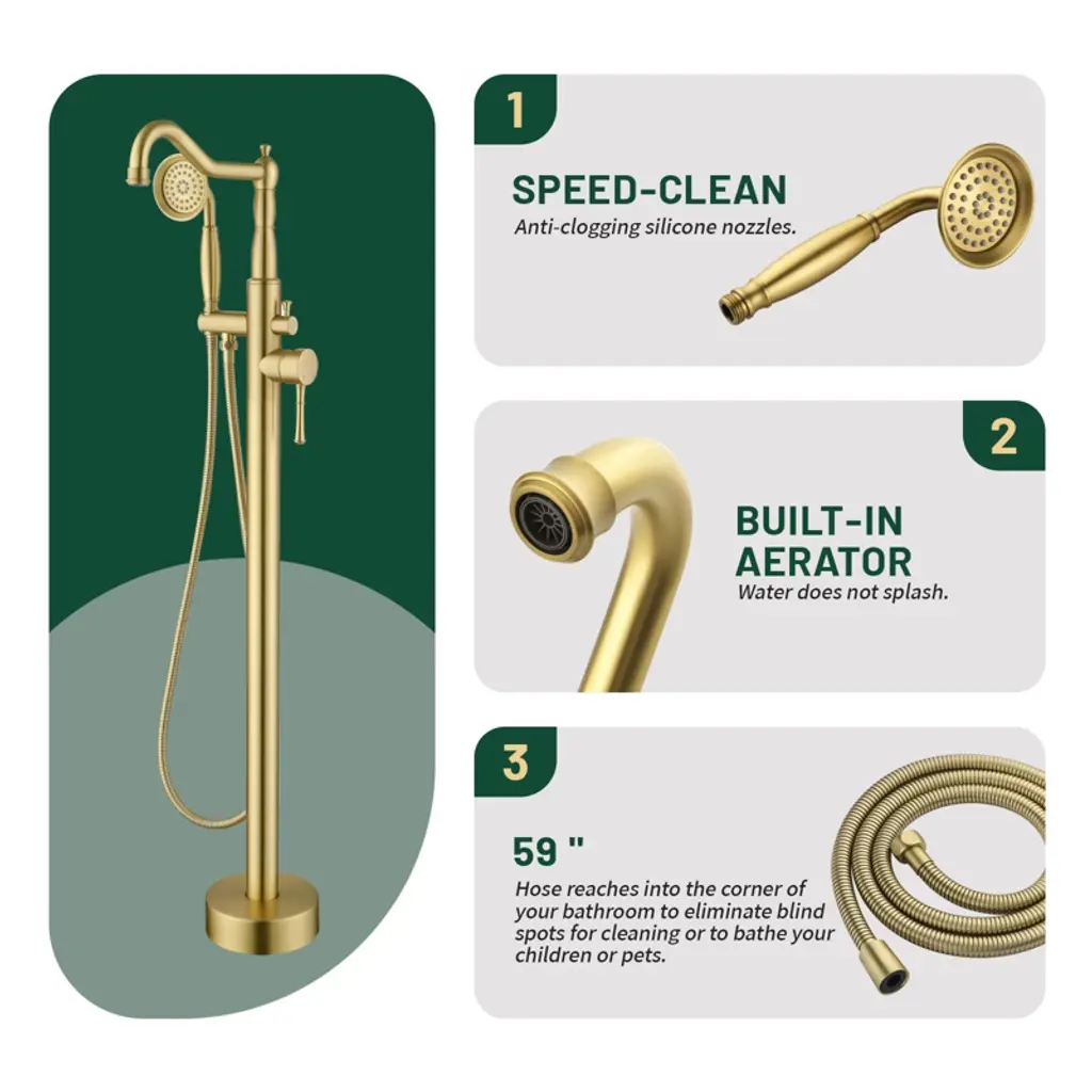 Cobbe Brushed Gold Freestanding Bath Faucet Single Handle Shower Faucet With Tub Spout And Handheld Showerhead