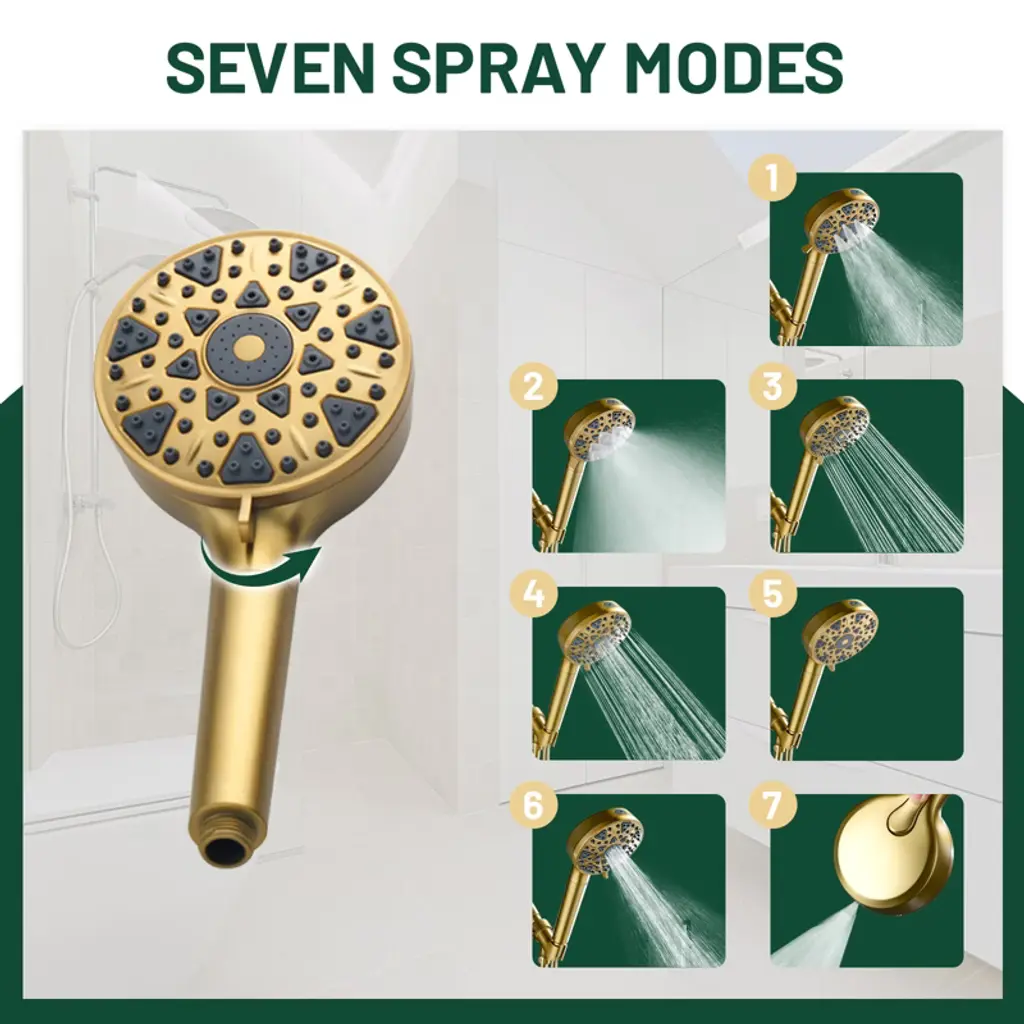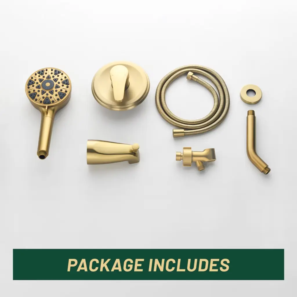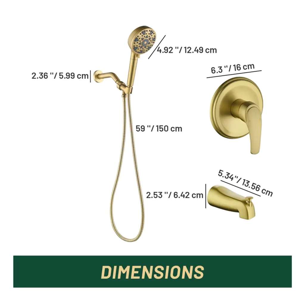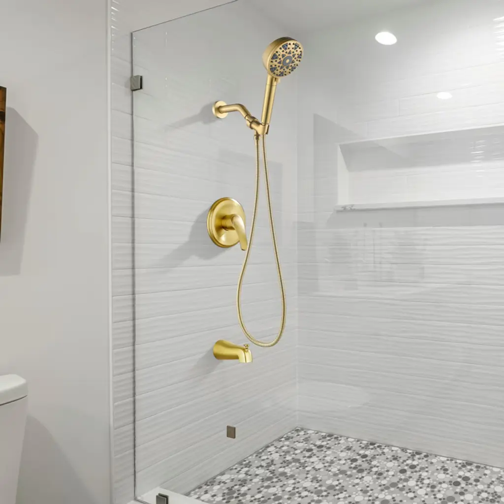 Cobbe Brushed Gold Single Handle Wall Mount Shower Kit With Bathroom 7 Settings (With Filtration) Hand Shower And Tub Spout With 59-inch Hose