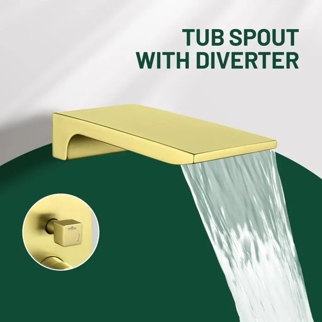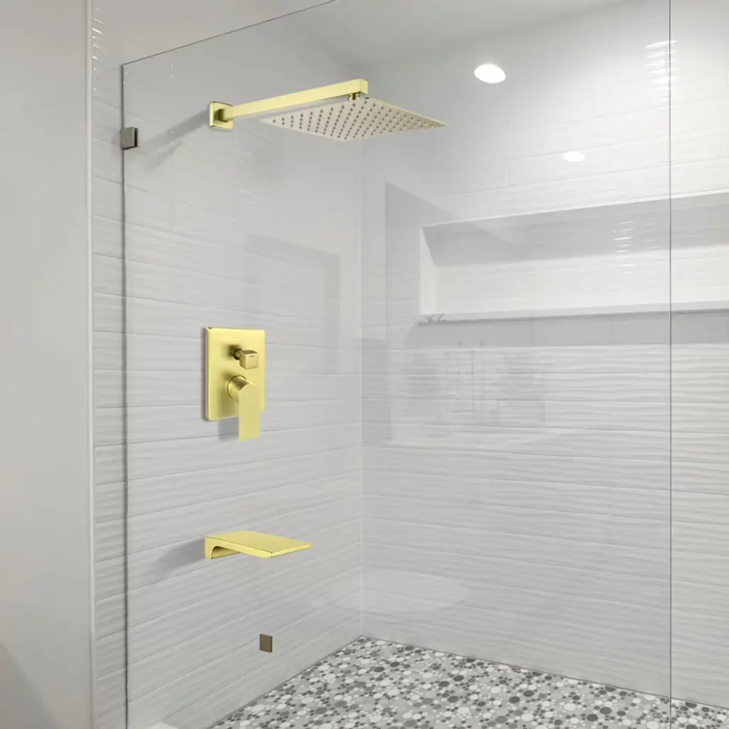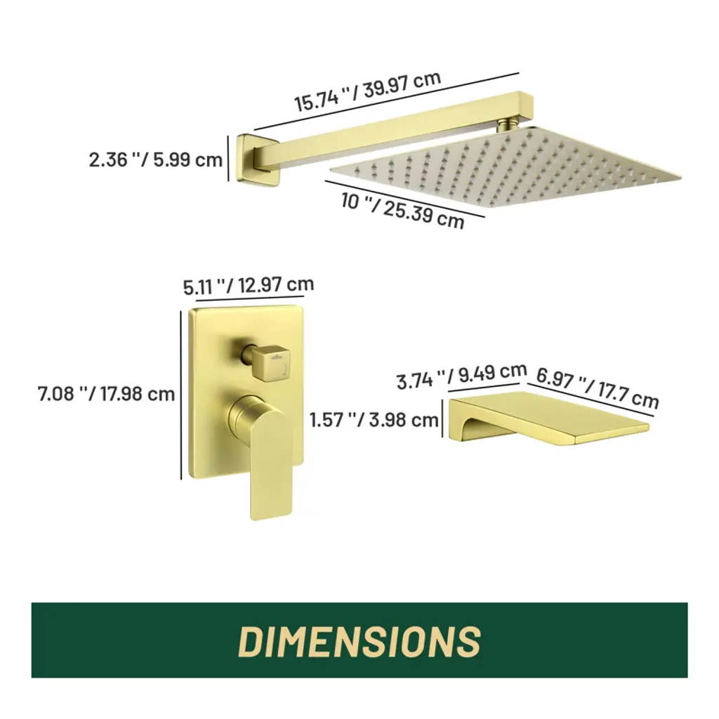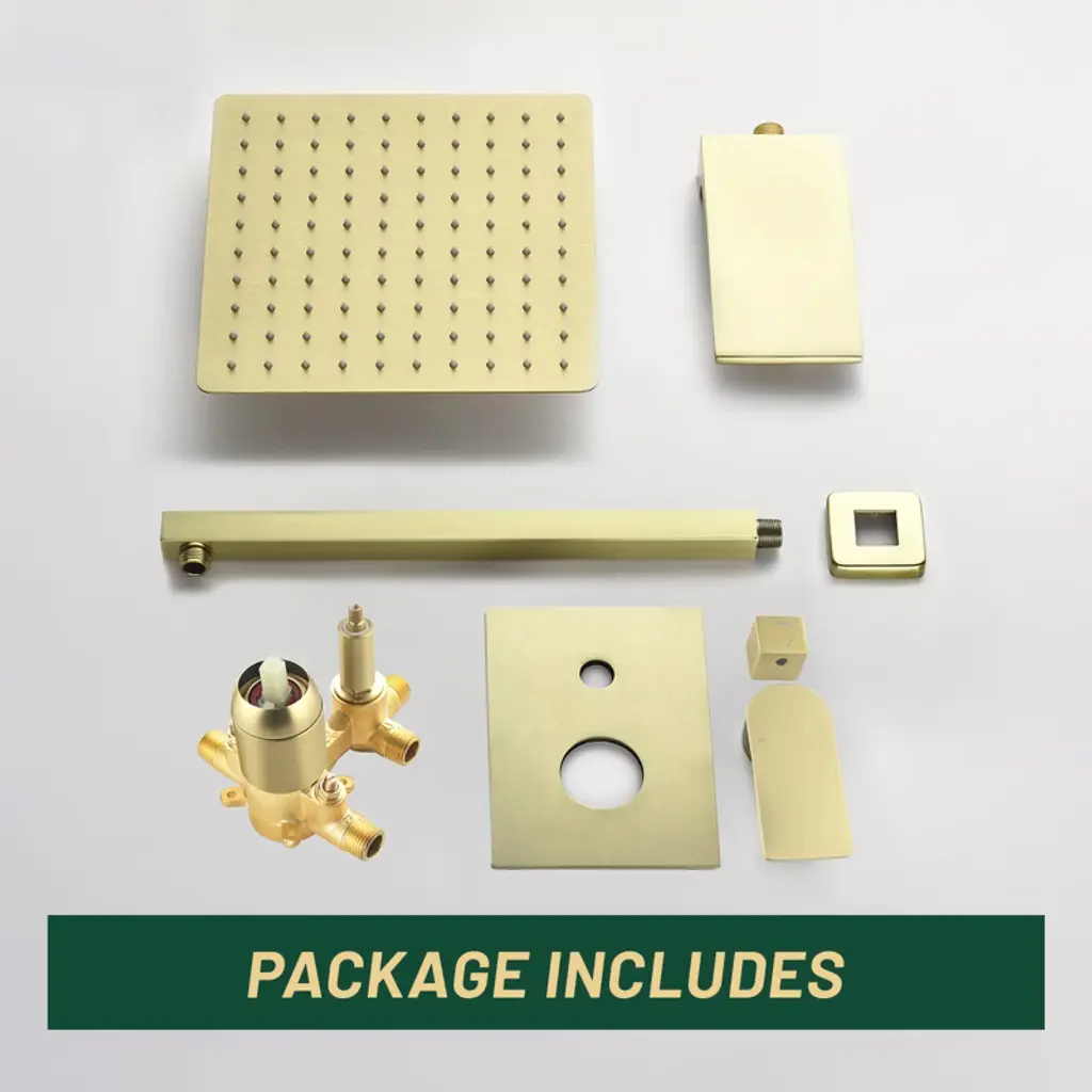 Cobbe Brushed Gold Wall Mounted Shower Kit With 10-inch Square Rain Shower Faucet, Tub Faucet, 15.74-inch Rain Shower Arm And Valve