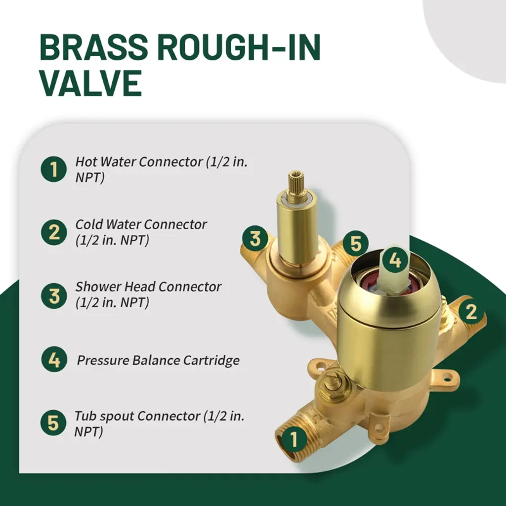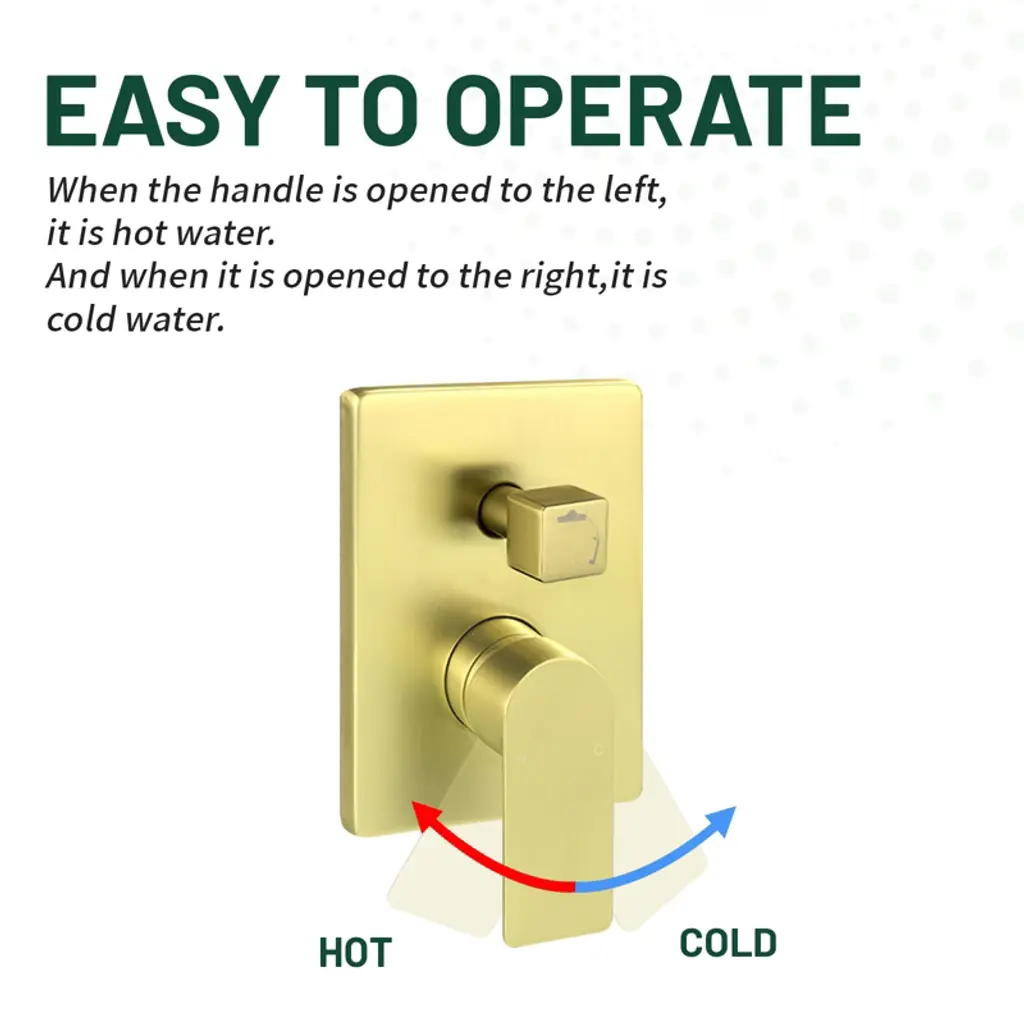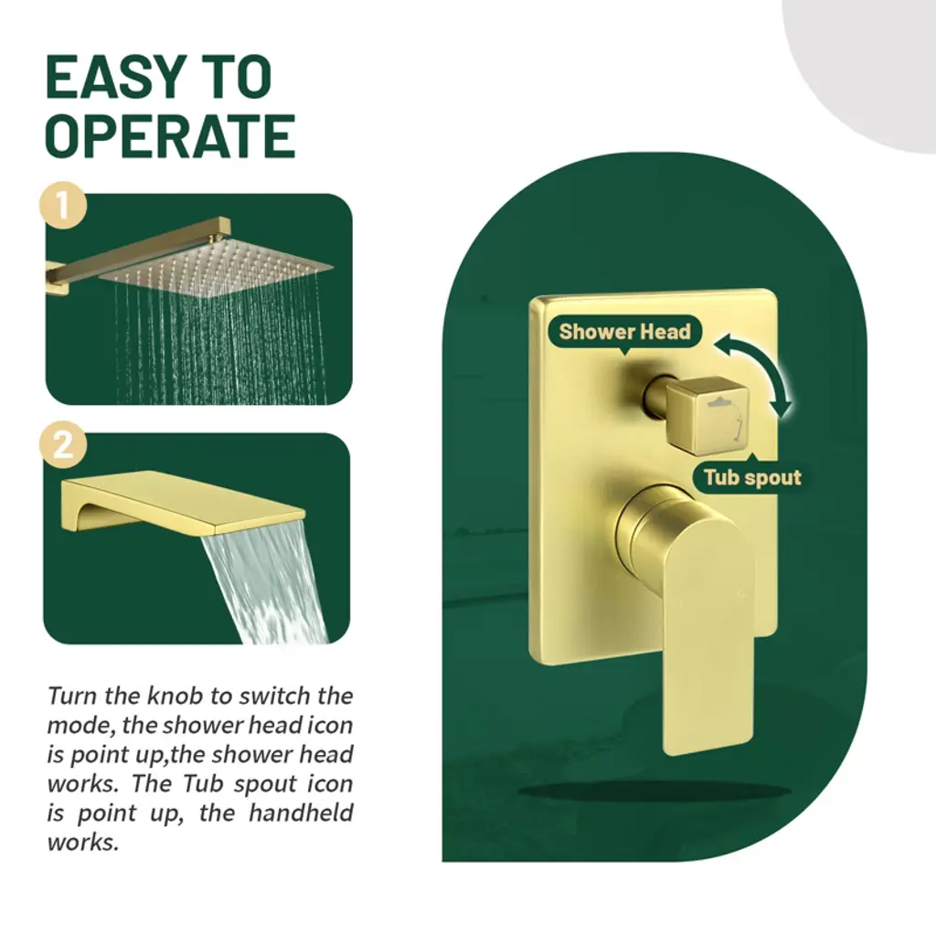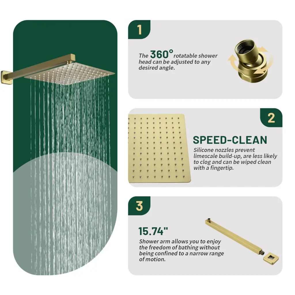 Cobbe Brushed Gold Wall Mounted Shower Kit With 10-inch Square Rain Shower Faucet, Tub Faucet, 15.74-inch Rain Shower Arm And Valve